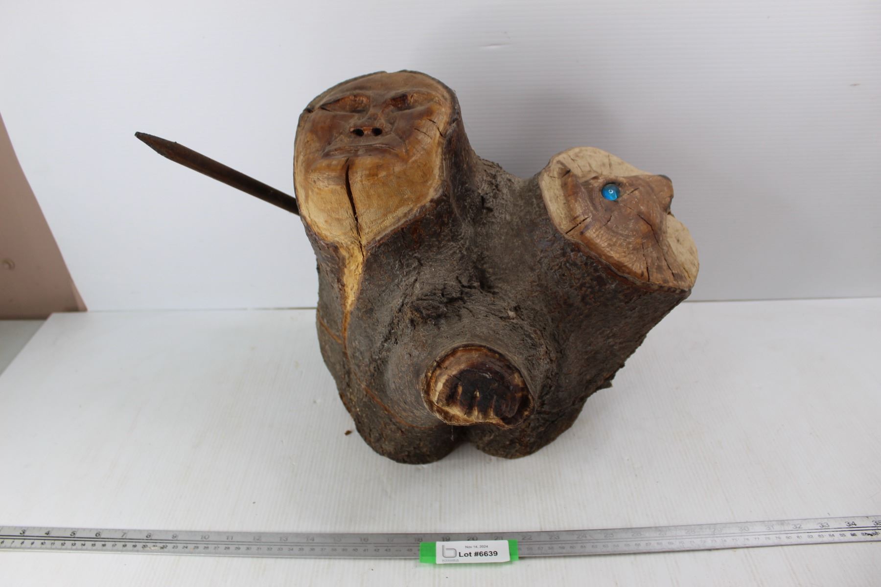 Wood Art Decor From Tree w/ Carved Faces/ Animals, 16'' x 15''- Beautiful Decor Piece