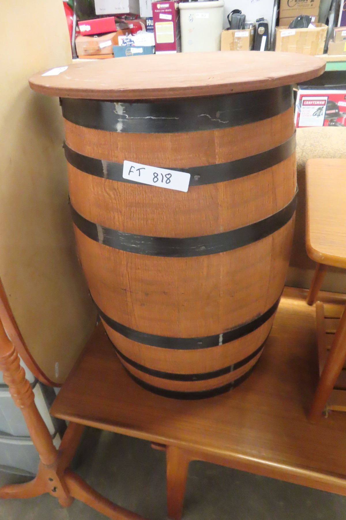 Wood Barrel with Top Added for End Table Use 23'' H x 15'' Diameter