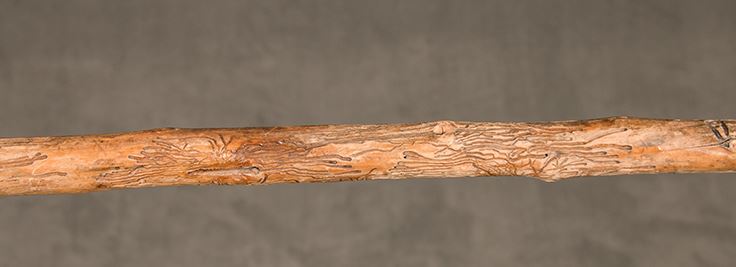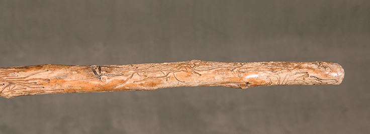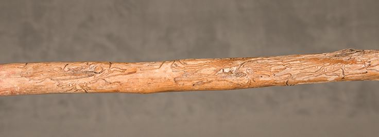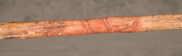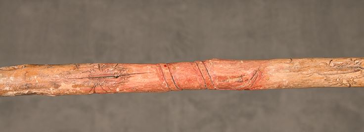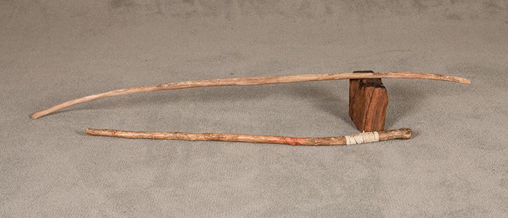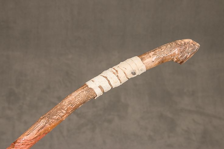 Wood Bow and "Snake Society" Staff. Bow is 44" long. Staff is 30" long. Circa 1890's.