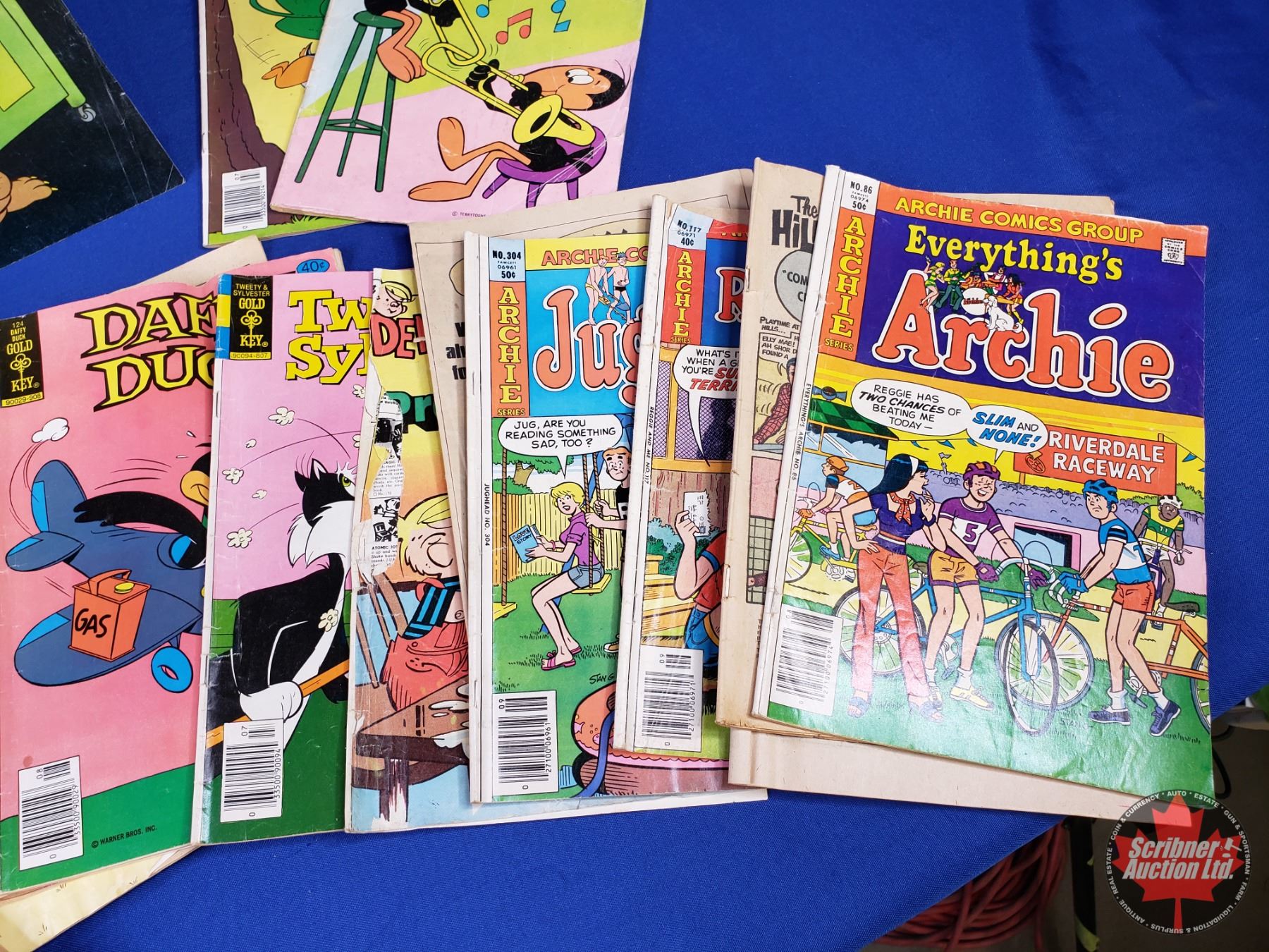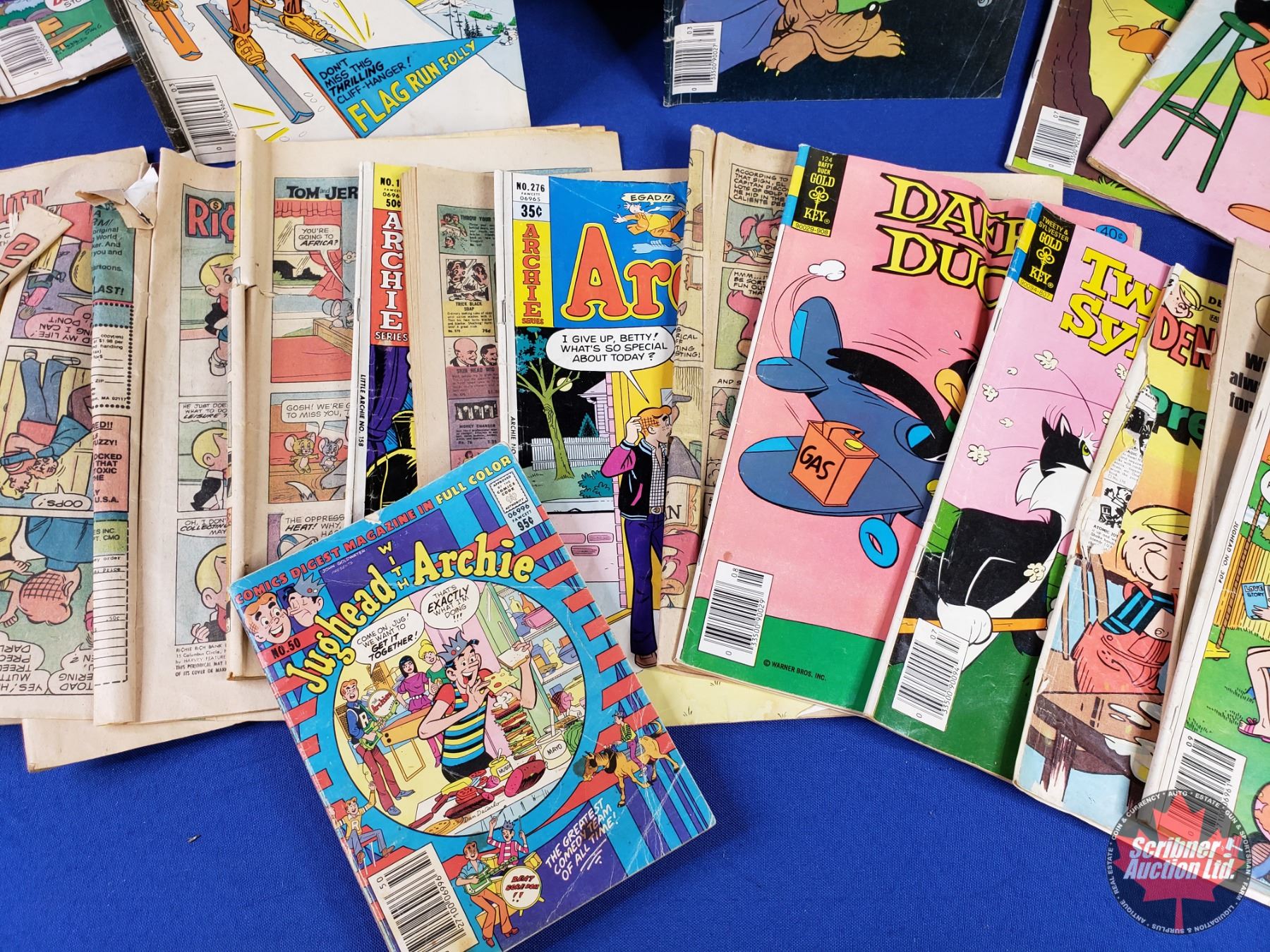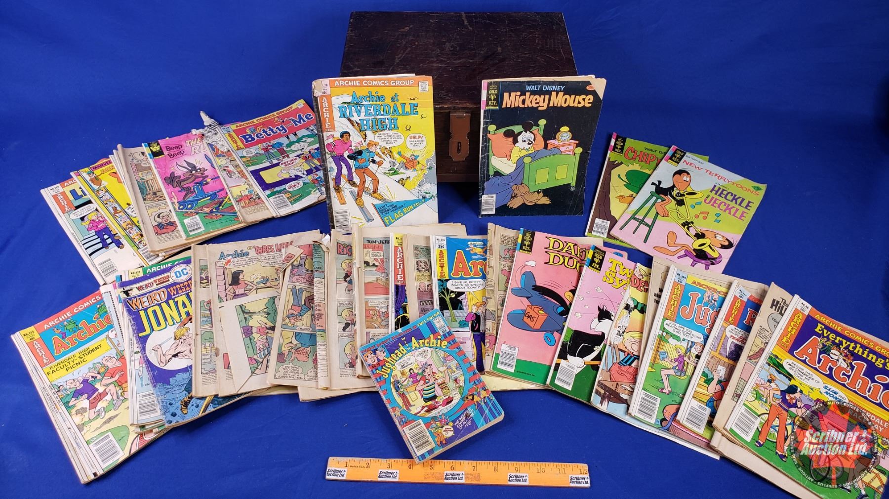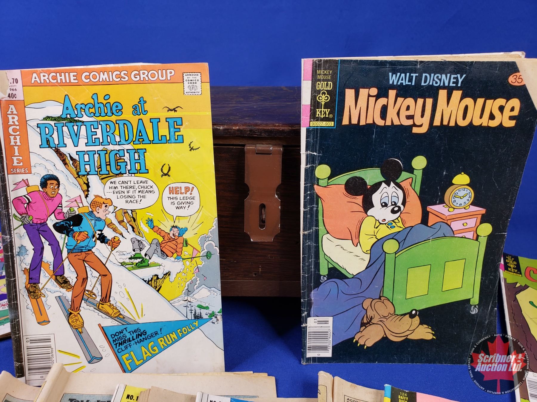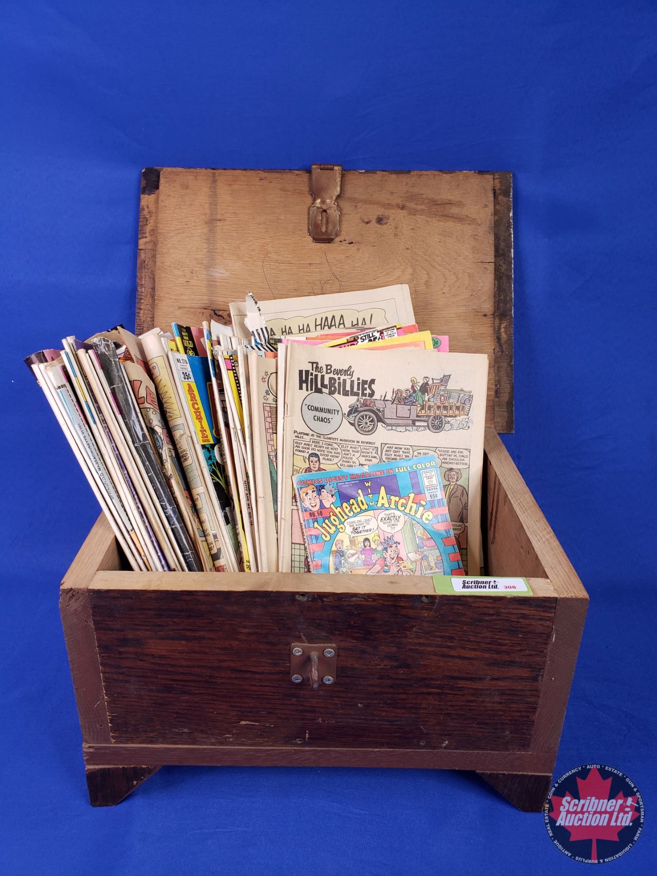 Wood Box /Trunk with Vintage Comic Book Collection (Incl. Beverly Hillbillies; Tweety & Sylvester; Archie; Mickey Mouse; etc!) (Wood Box Measures: 7-3/4"H x 14-1/2"W x 10-1/2"D) (Look at Photos for Types/Labels) (SEE PICS!)