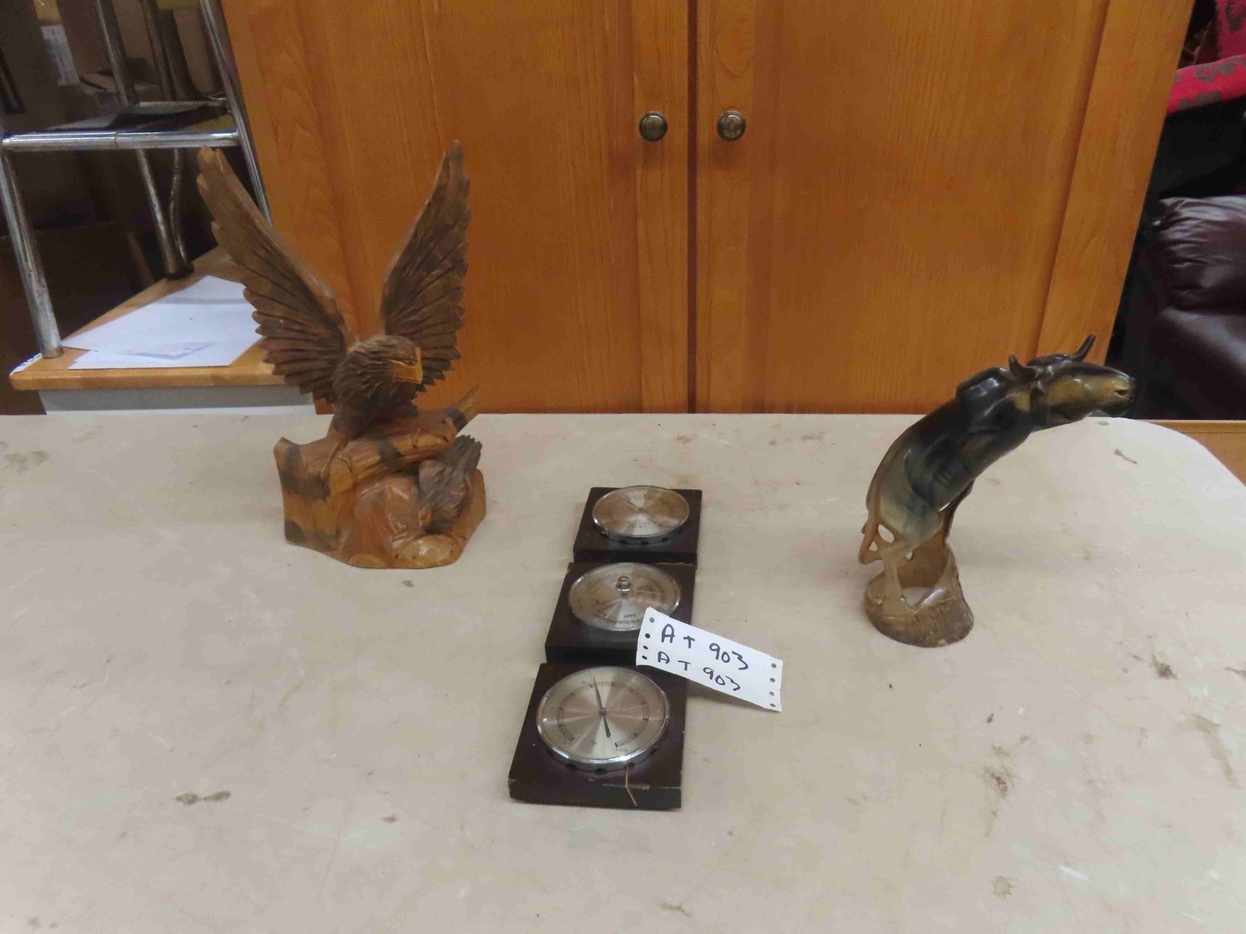 Wood Carved Eagle , Horn Carved Moose 14'' x 8'' , Barometer