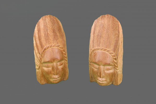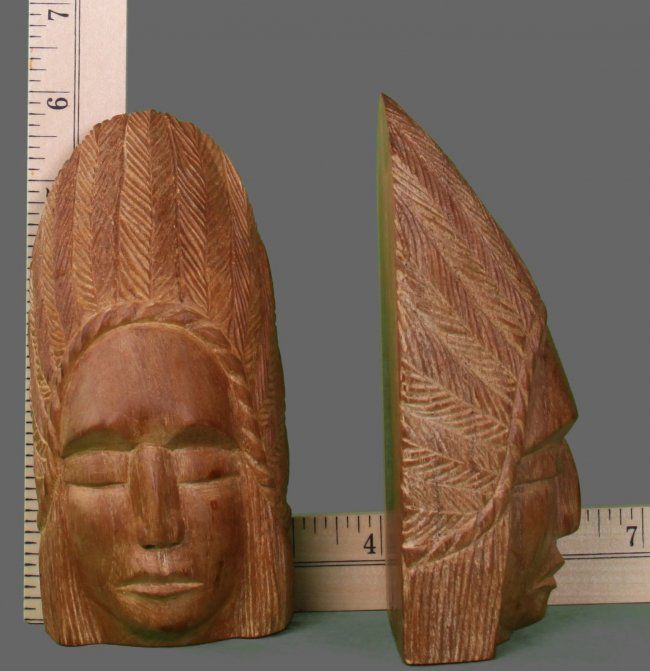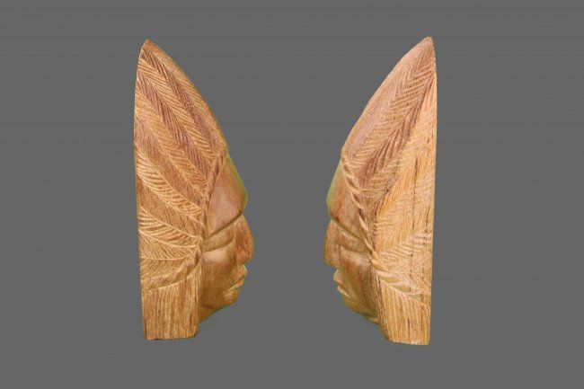 Wood Carved Indian Chief Book Ends, Native American (Size: See Last Photo for Measurements)