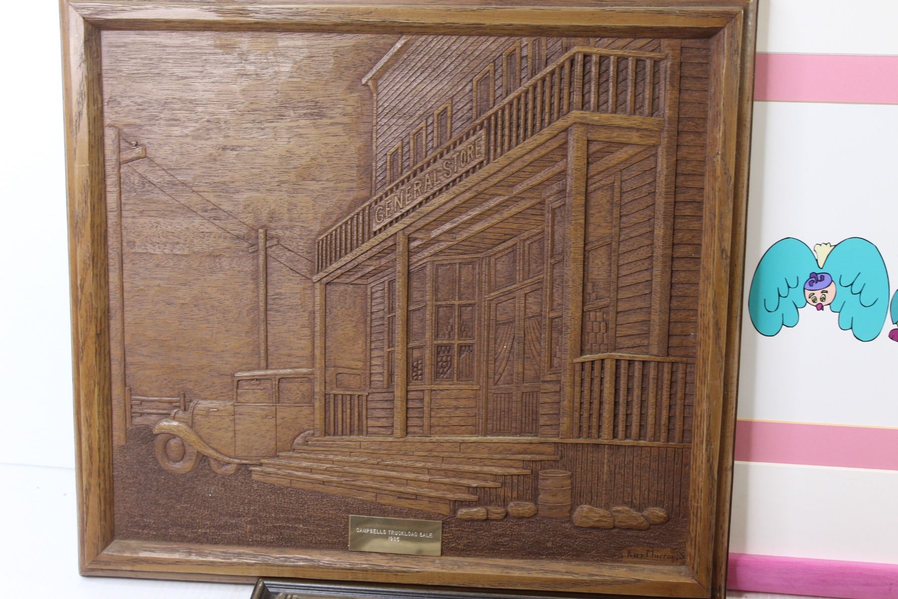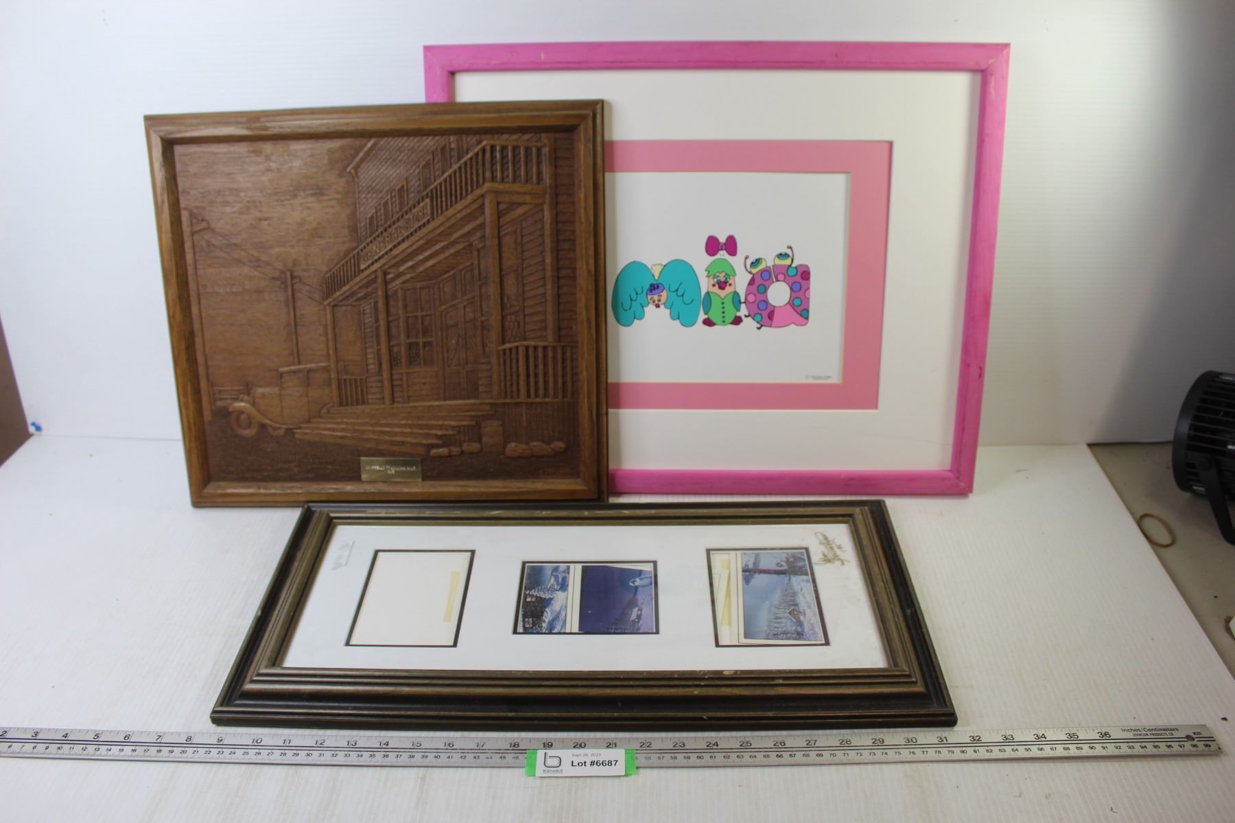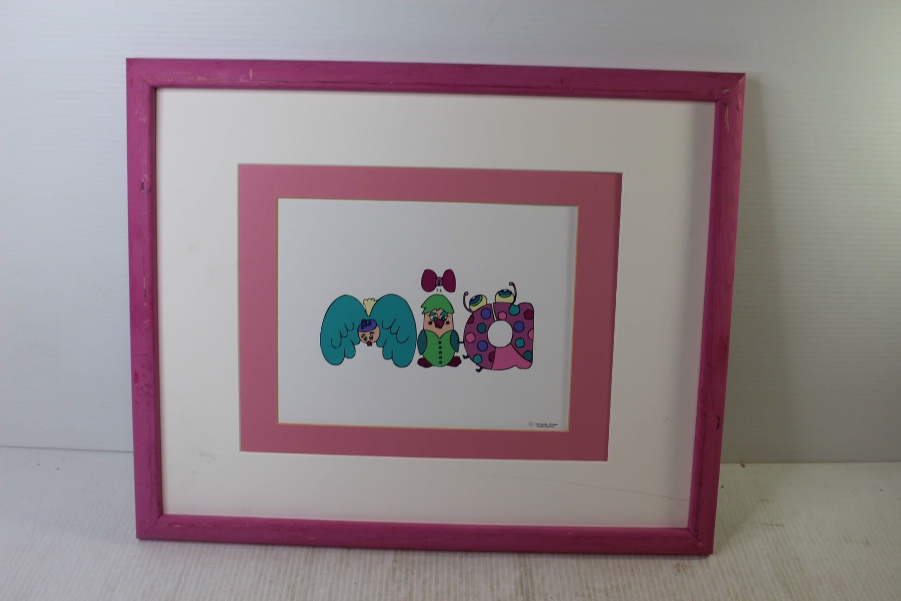 Wood Carved Picture - Print in Pink Frame - Photo Holder