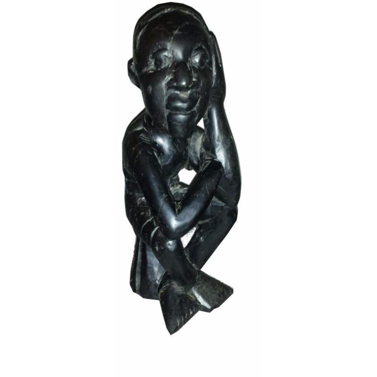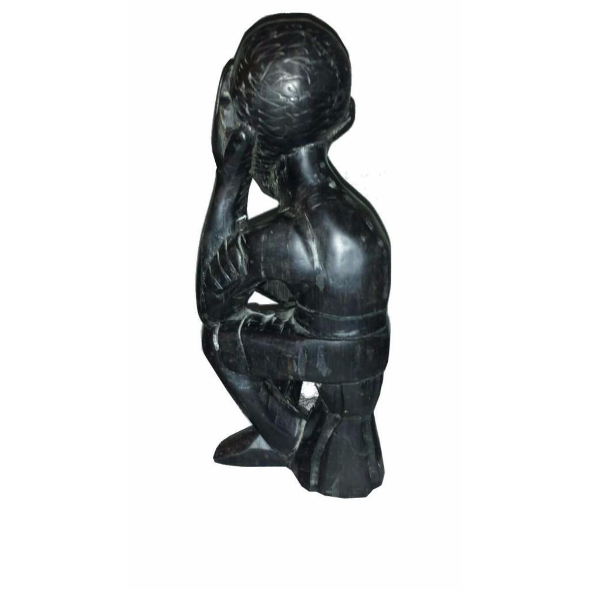 Wood Carved Sculpture Thinking Man.