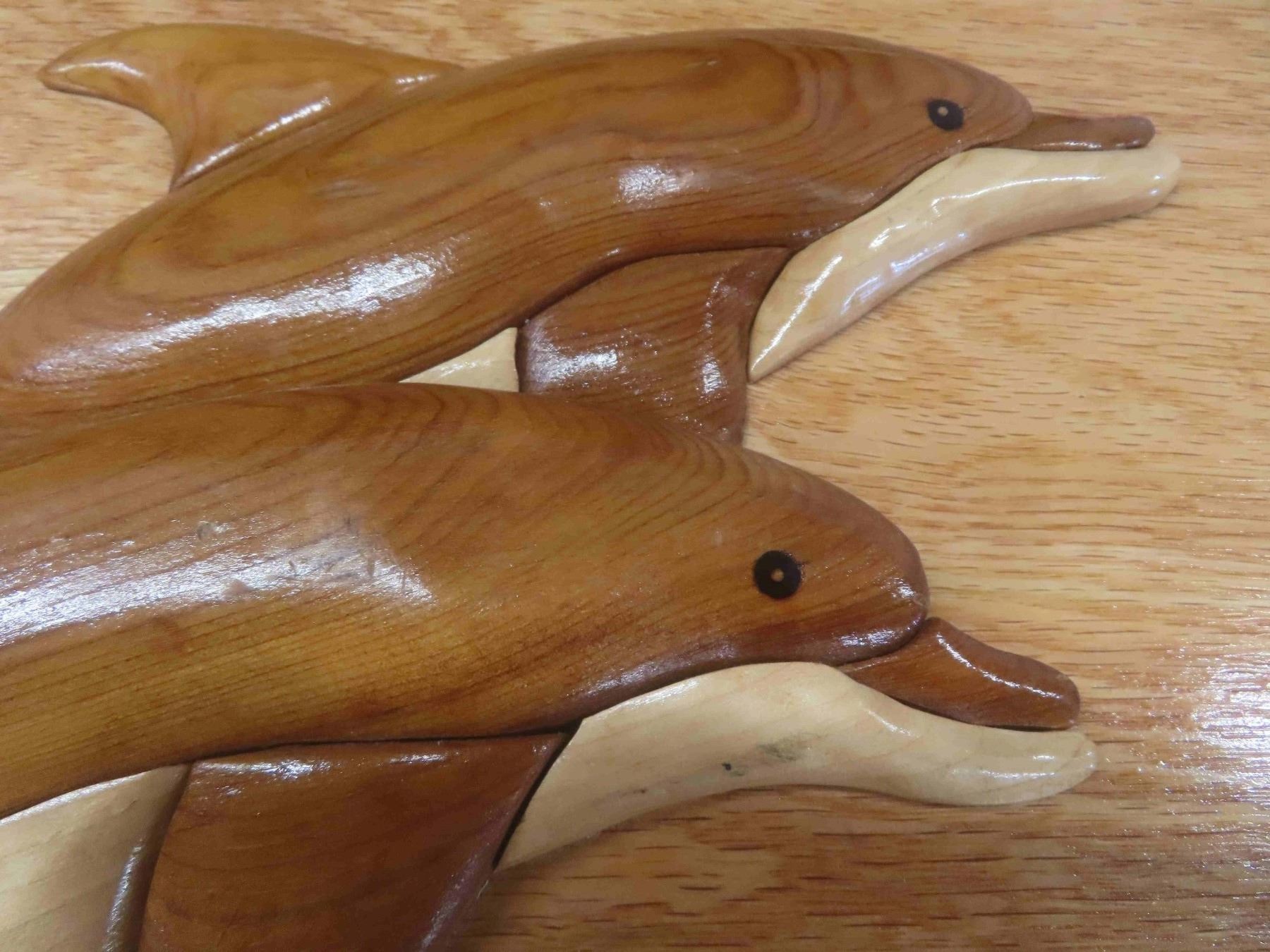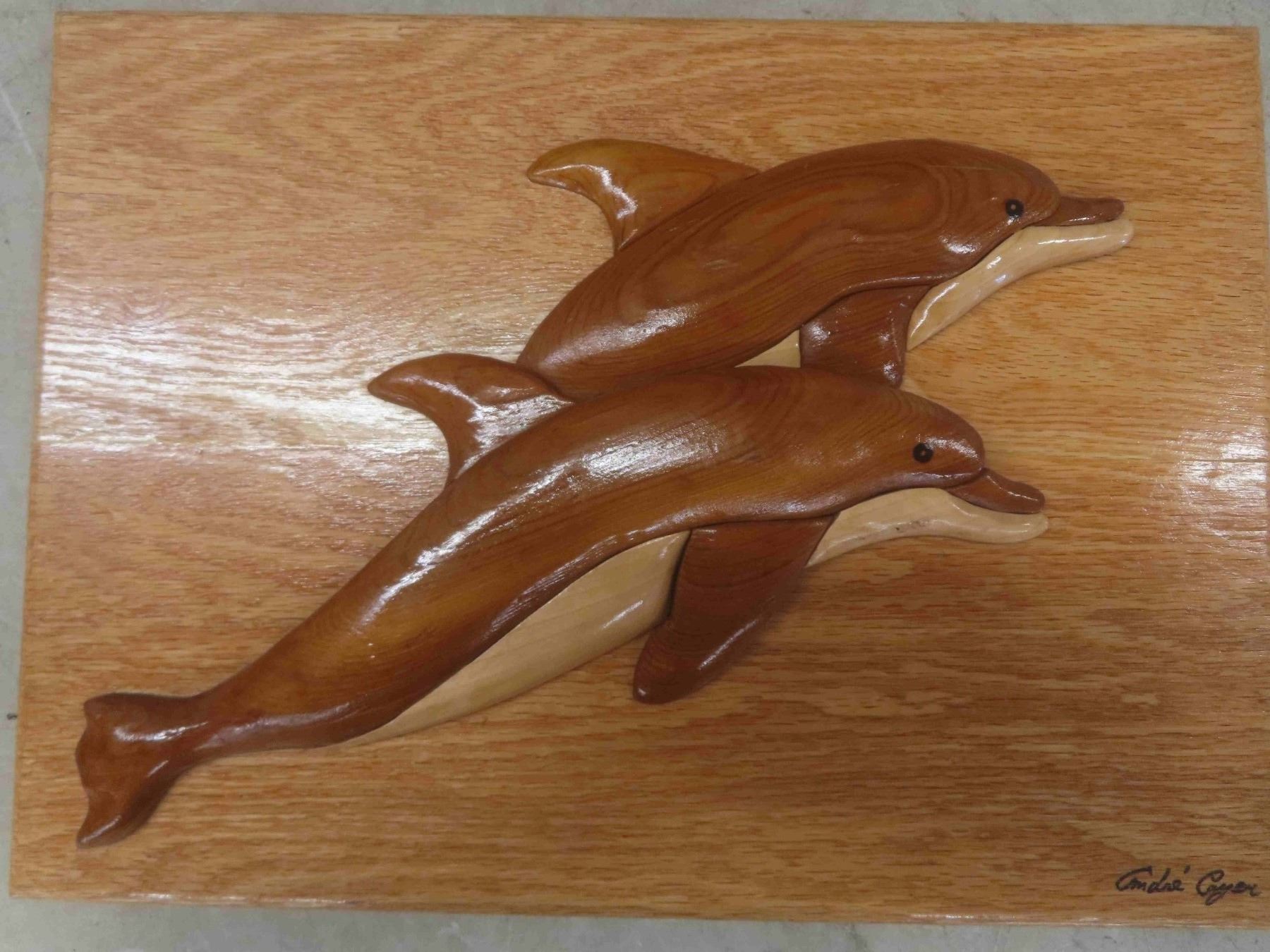 Wood Carving of Dolphin Picture Signed 15 1/2'' x 11'' , Original Pencil Sketch