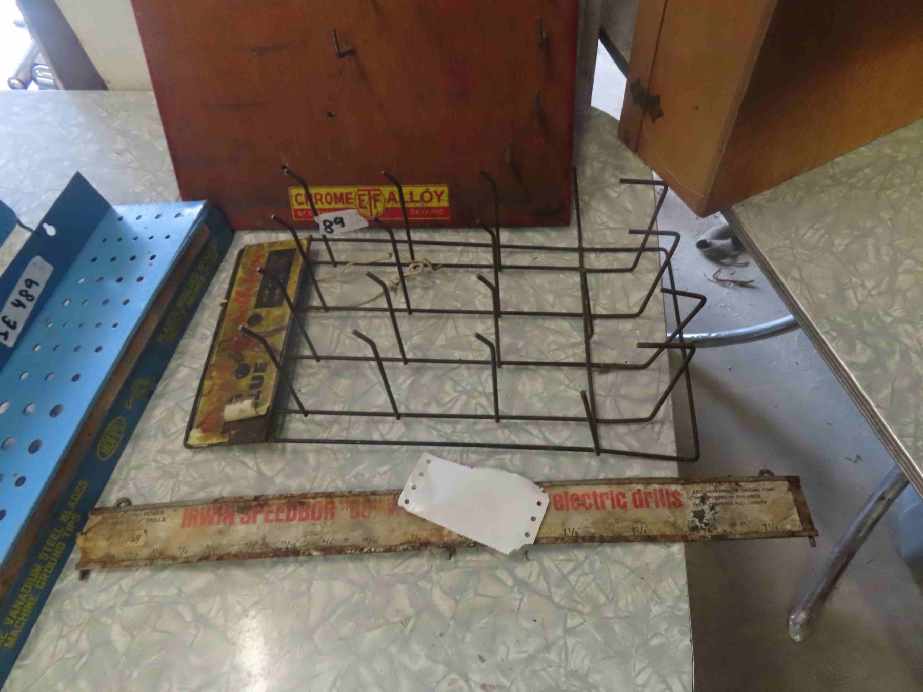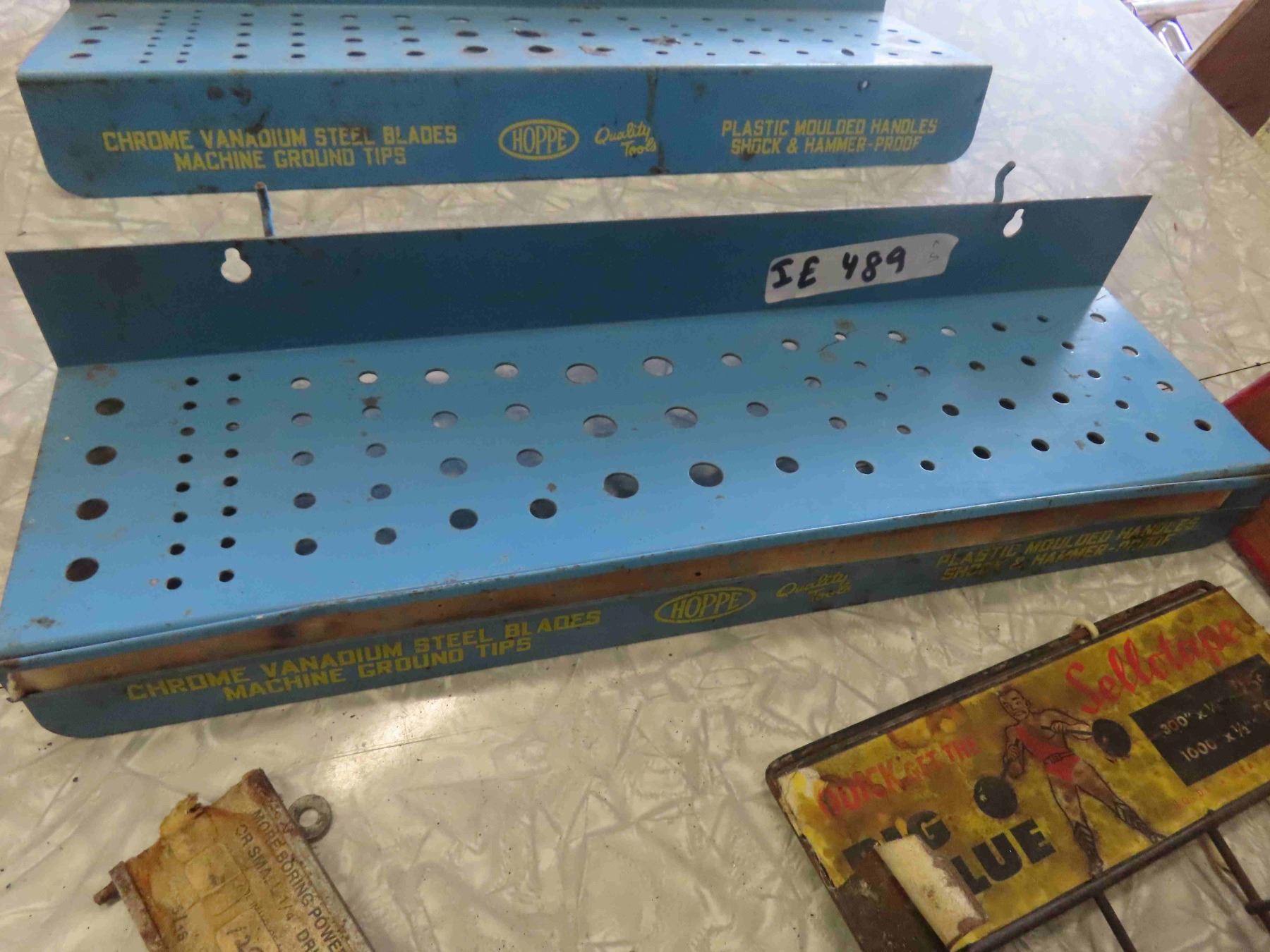 Wood Chrome ETF Alloy 16'' x 32'' , 2 Metal Hoppe Tool Displays , Irwin Drills Rack Topper , Sellotape Metal Rack