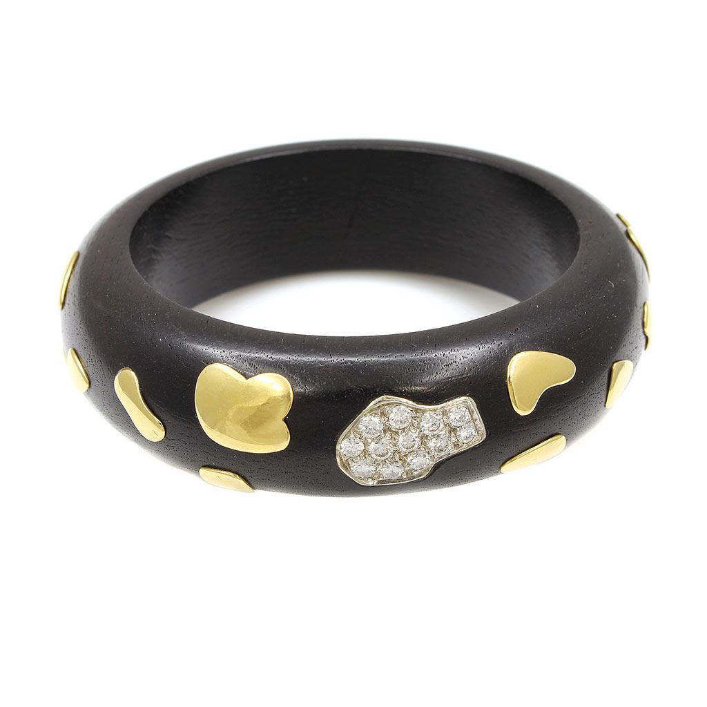 Diamond and Gold Inlay Bangle on Wood