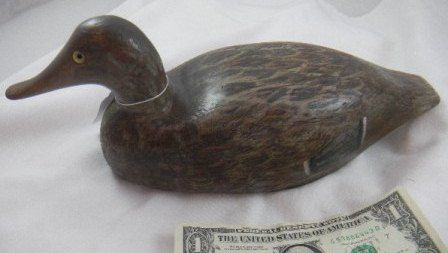 Wood Duck Decoy 13x4 inches. Condition very good condition. Duck has glass eyes, signed by JF has fine painted on body. Shipping $15.00