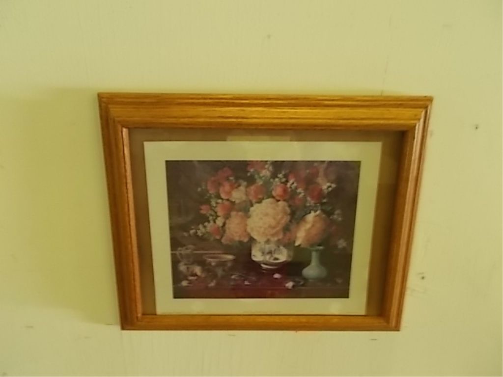 Wood Frame Floral Picture Under Glass approx. 17 x 13 1/2"