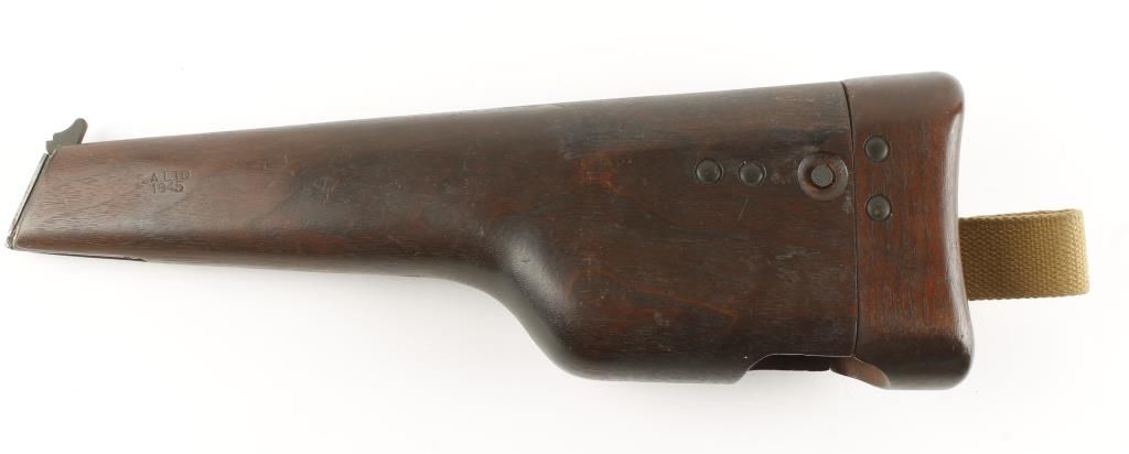 Marked "S.A. Ltd 1945". Used for Inglis and Browning High Power pistols. Includes belt loop assembly marked "ZL&T Ltd". Shows light wear and possible refinished at one time as no "Made in " exists. All hardware appears correct.
