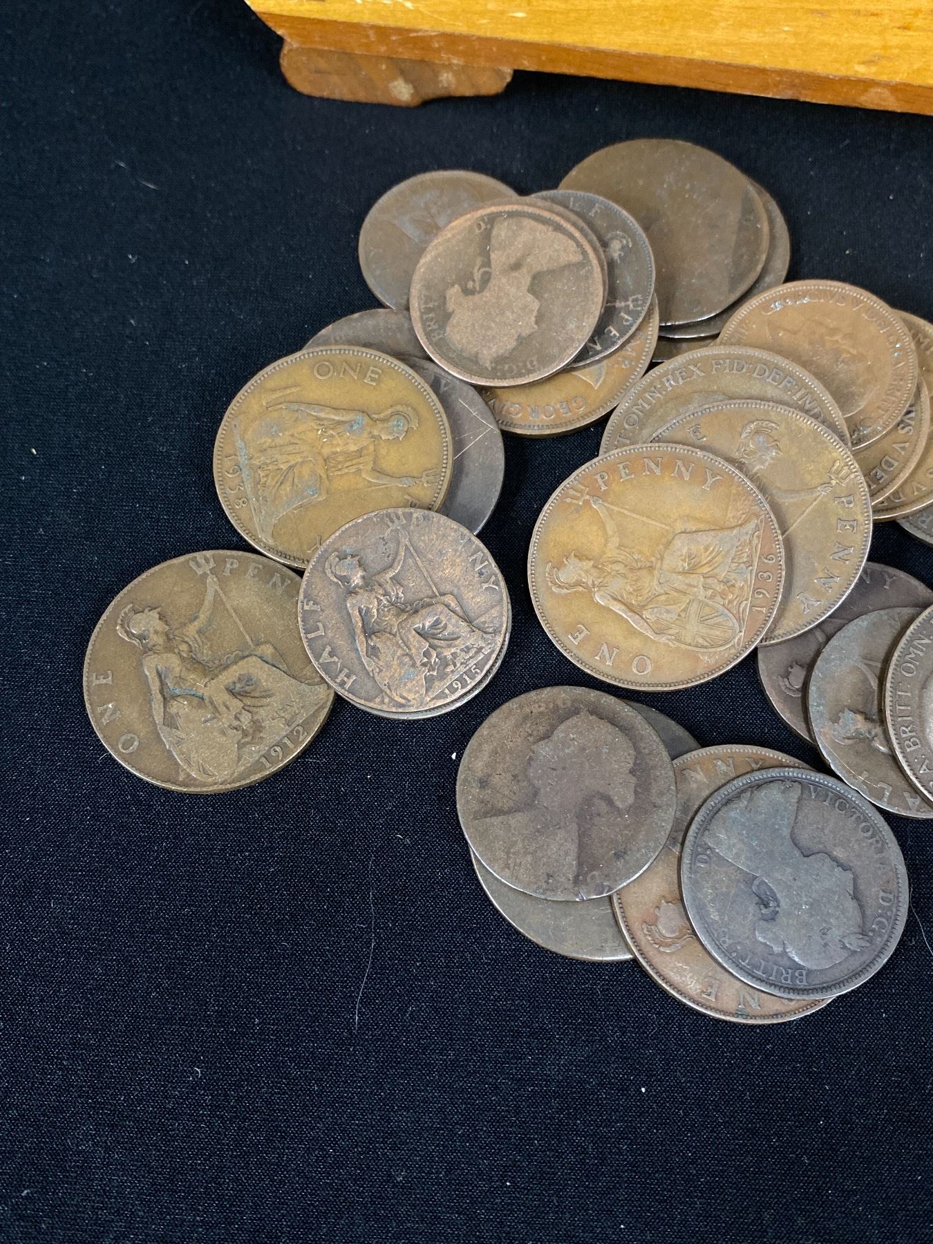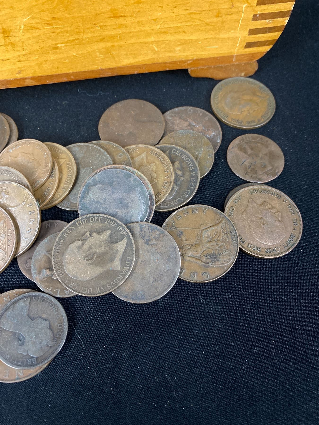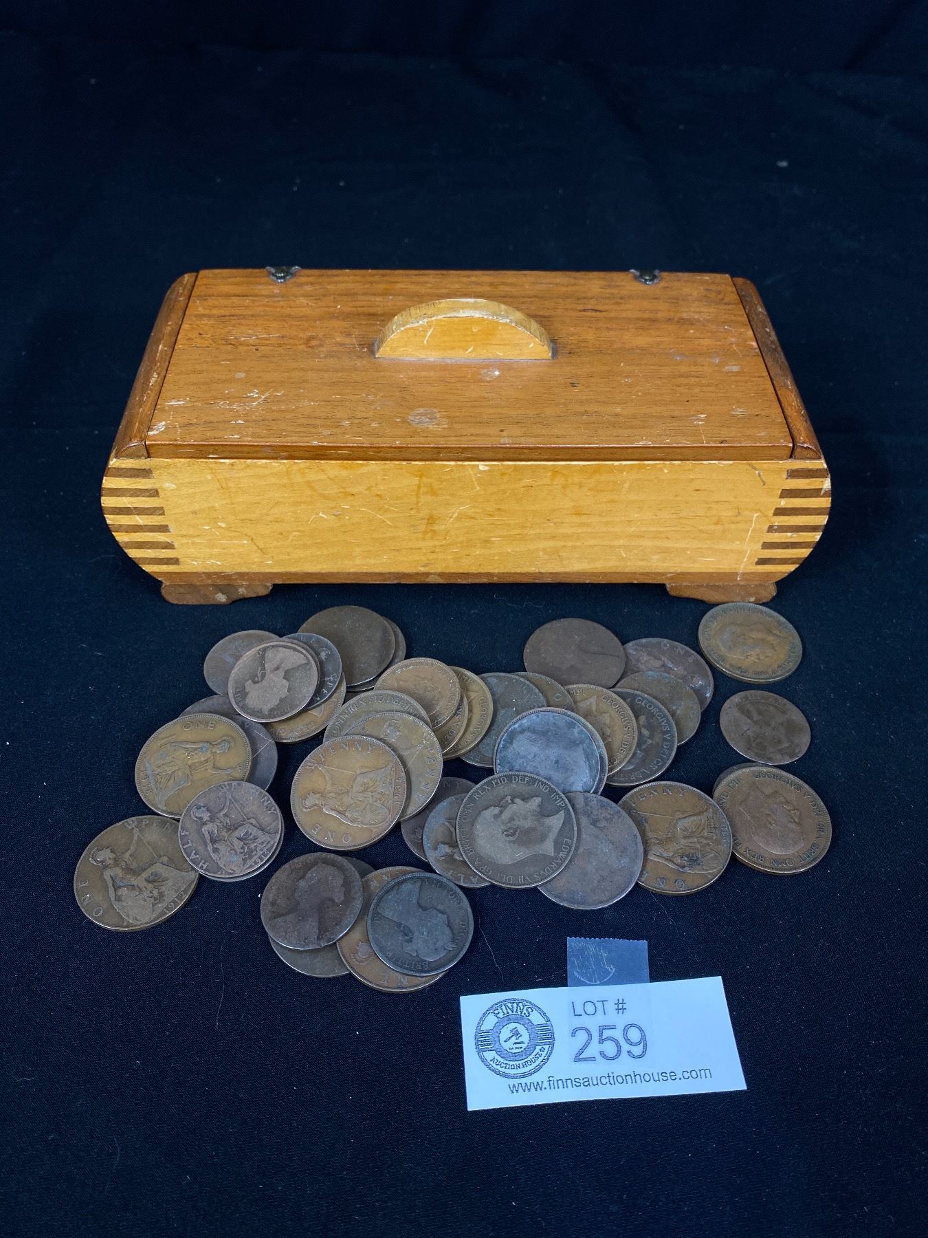 Wood Keepsake Box with 43 Early 1901 English Pennies