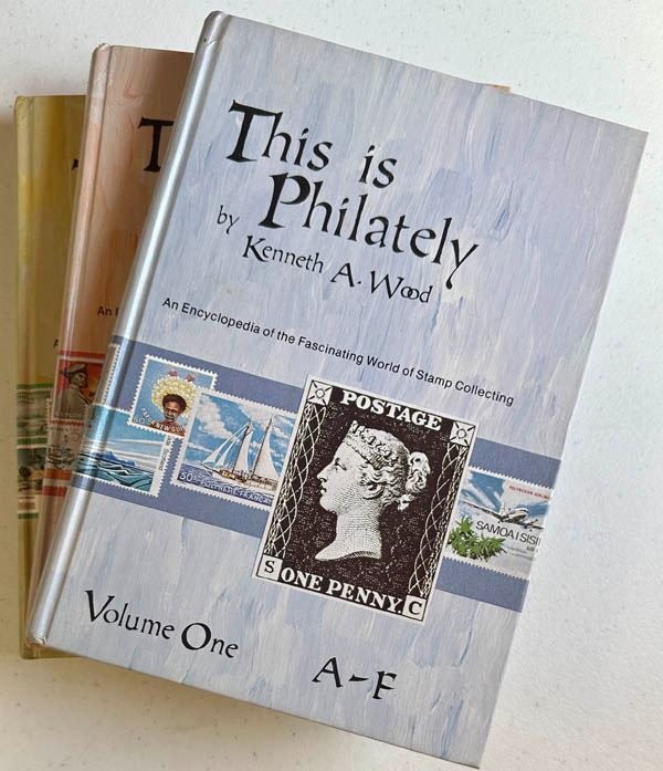 Wood, Kenneth A., This is Philately, An encyclopedia of the fascinating world of stamp collecting in a three volume set with a total of 882 pages; black and white illustrations