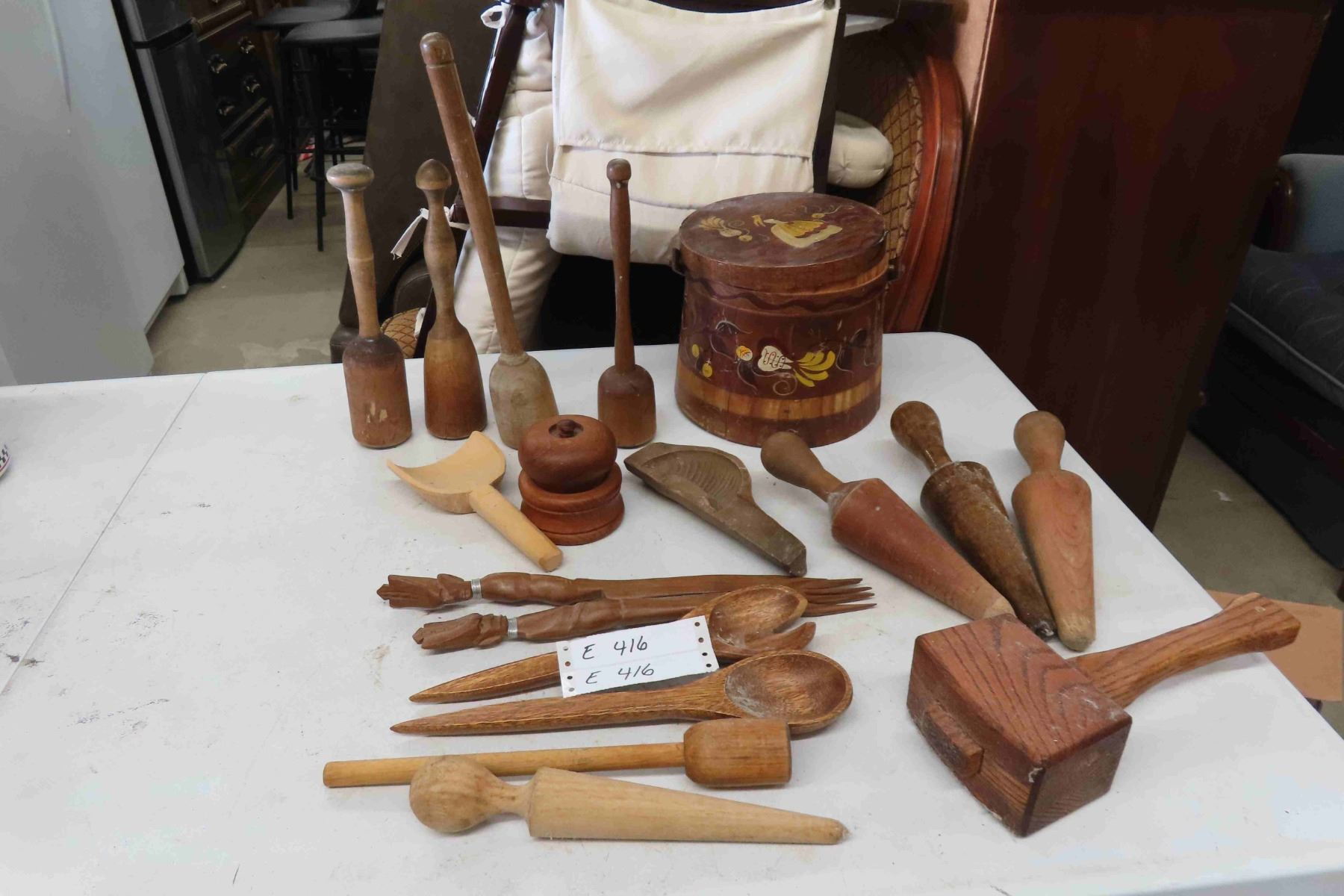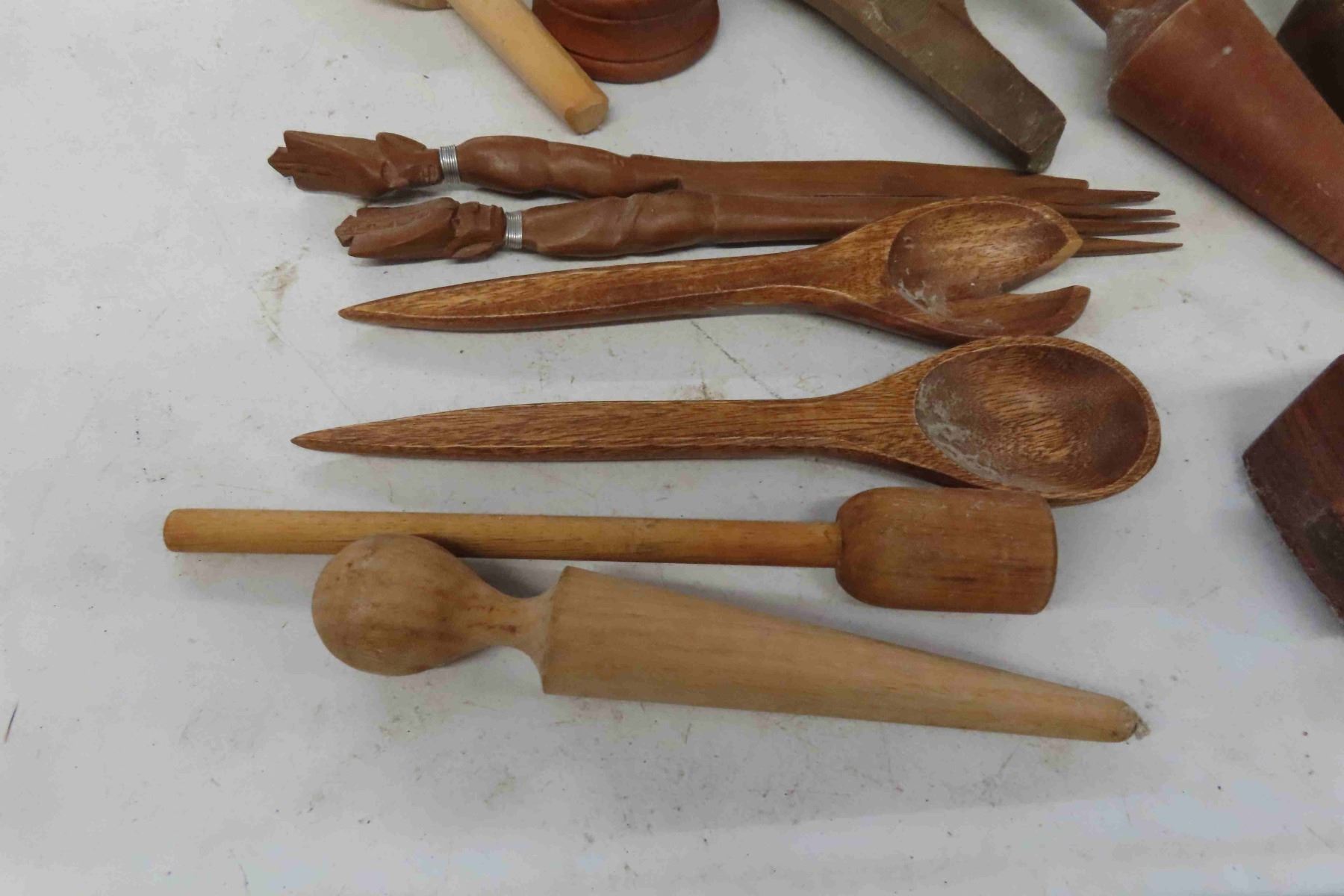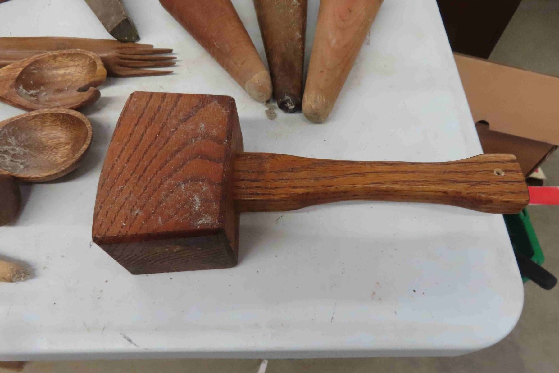 Wood Kitchen Utensils, Spoons, Forks, Mallet
