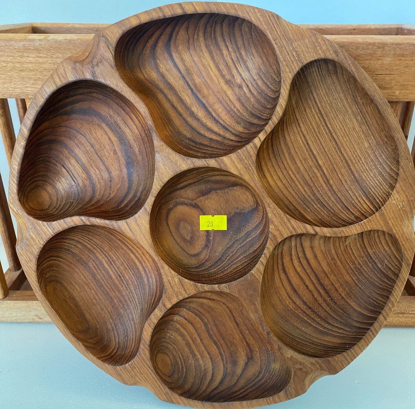 Wood Magazine Rack 18x10 w/ Hand Carved Serving Dish