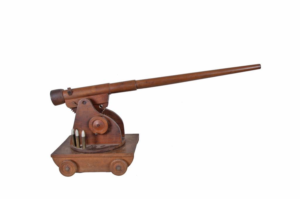 Wood Model of an Artillery Cannon WWI, in overall excellent condition, measures 47 1/2" of cannon, base measures 18".WWI, in overall excellent condition, measures 47 1/2" of cannon, base measures 18".