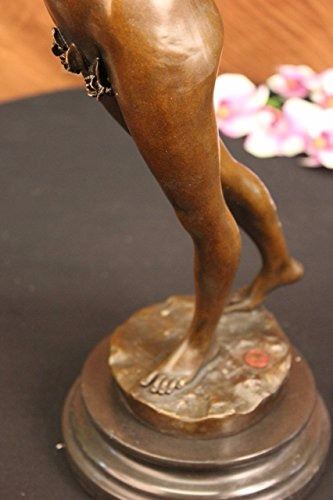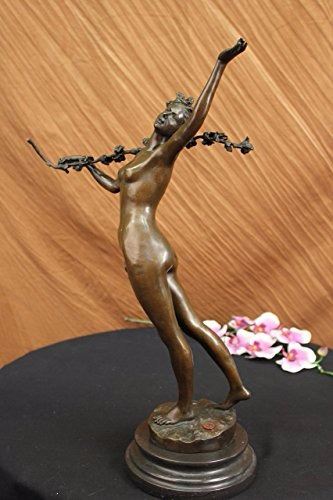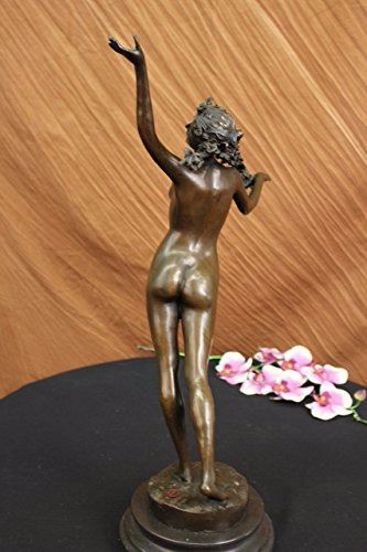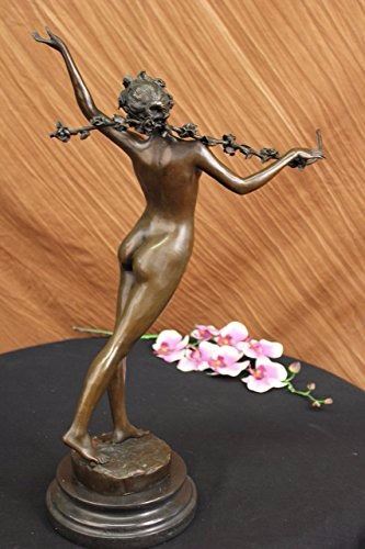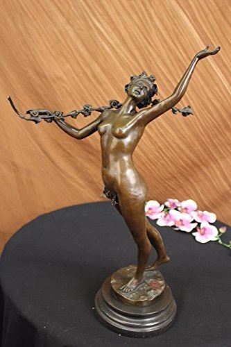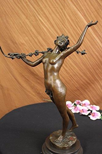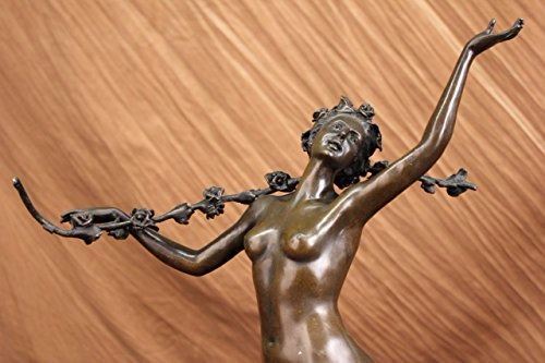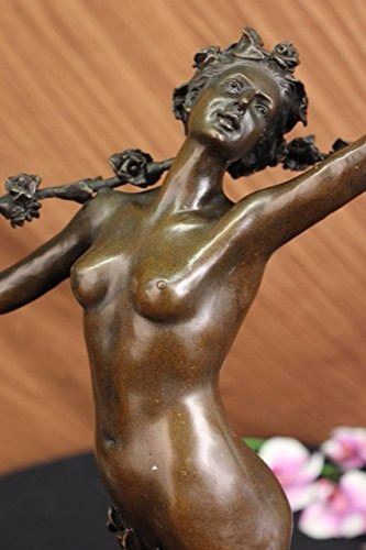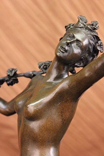Nymph Raises Her Arm And Looks Out Onto The Land. The Flowers That Cover Her Pelvis Are The Only Covering Her Body Has. Her Feminine And Curves Remain Nude. Blossomed Flowers Are Present Throughout This Piece. She Carries A Long Stem Filled With Many Roses On Her Shoulder. This Is A Sensual And Natural Sculpture Made Of 100% Bronze. It Stands On A Black Marble Base. Size: 21X14 inches. Weight: 15 LBS.