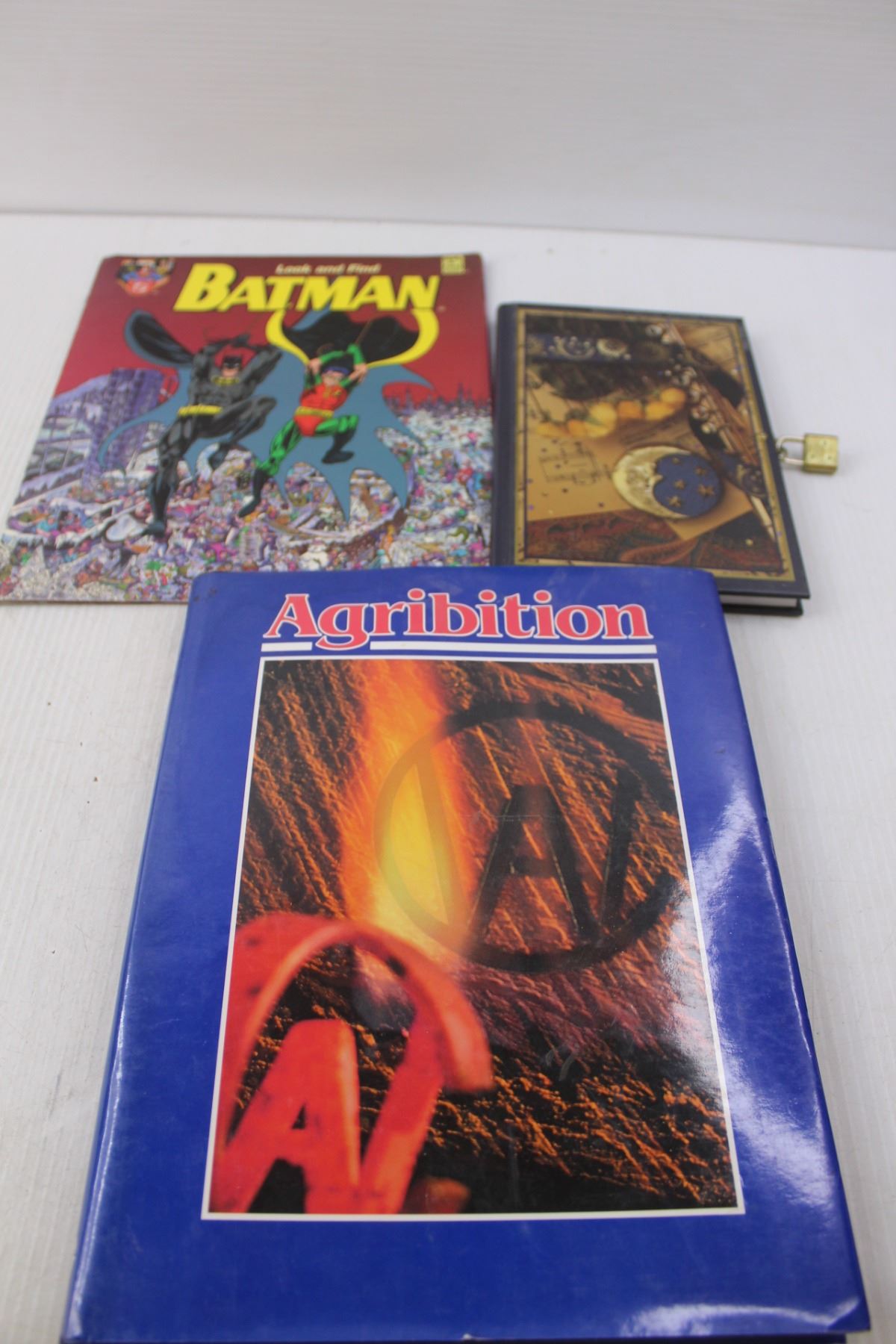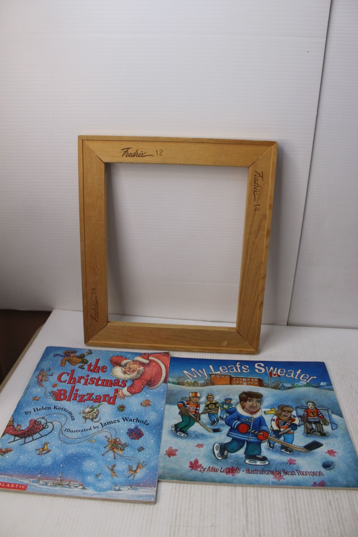 Wood Photo Frame 14" x 12", (5) Books- Journal, Batman Comic, My Leafs Sweater, Misc.