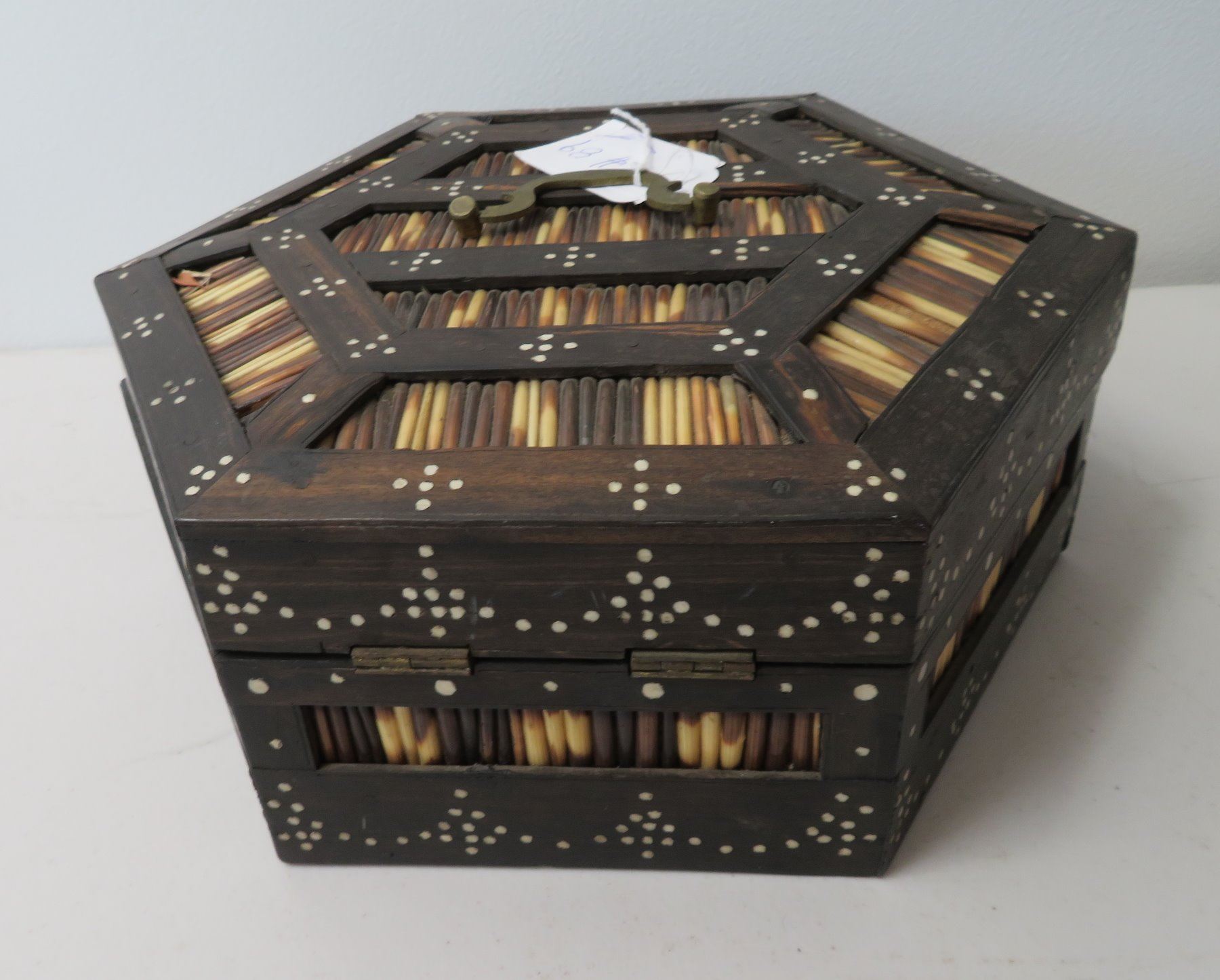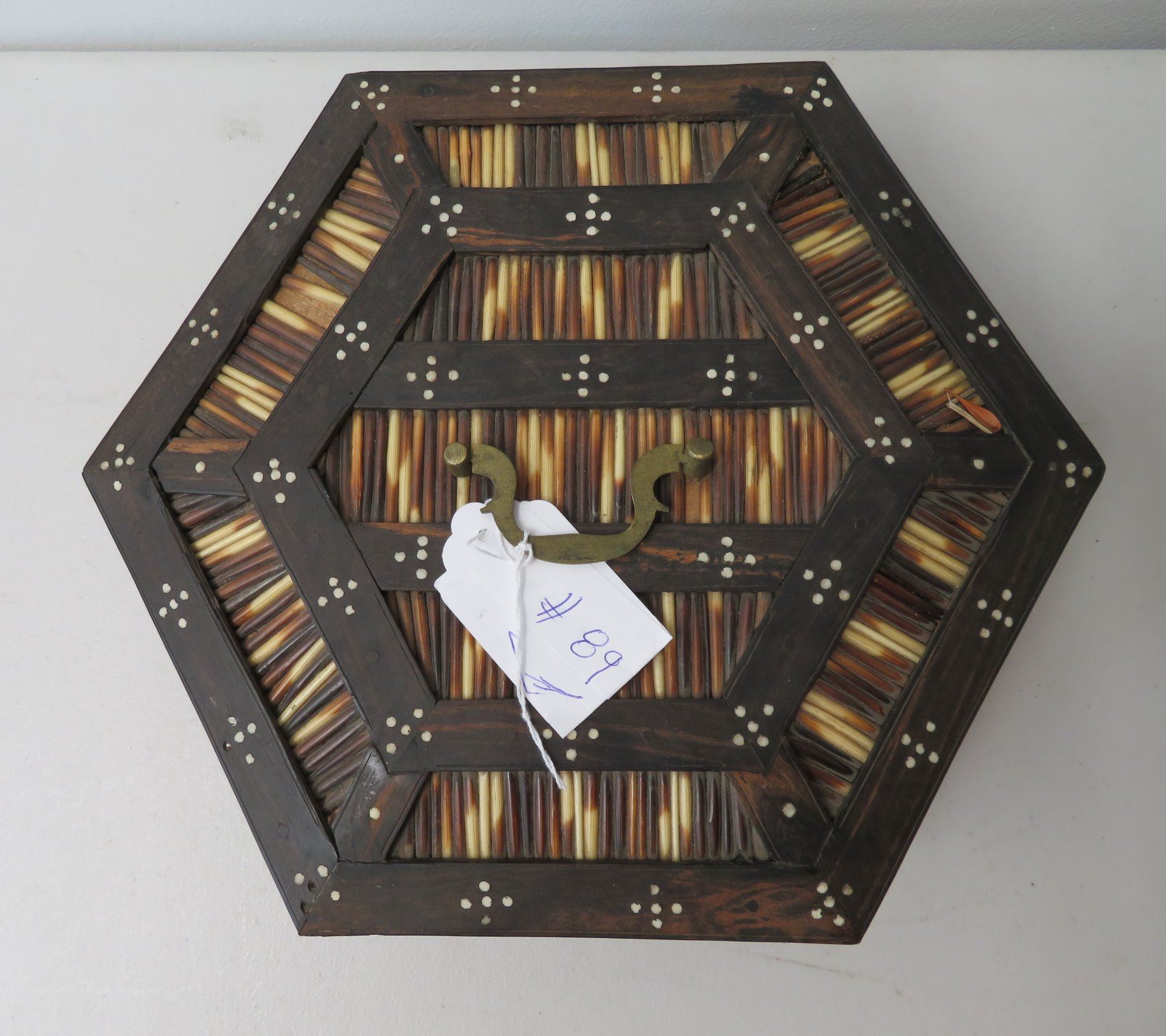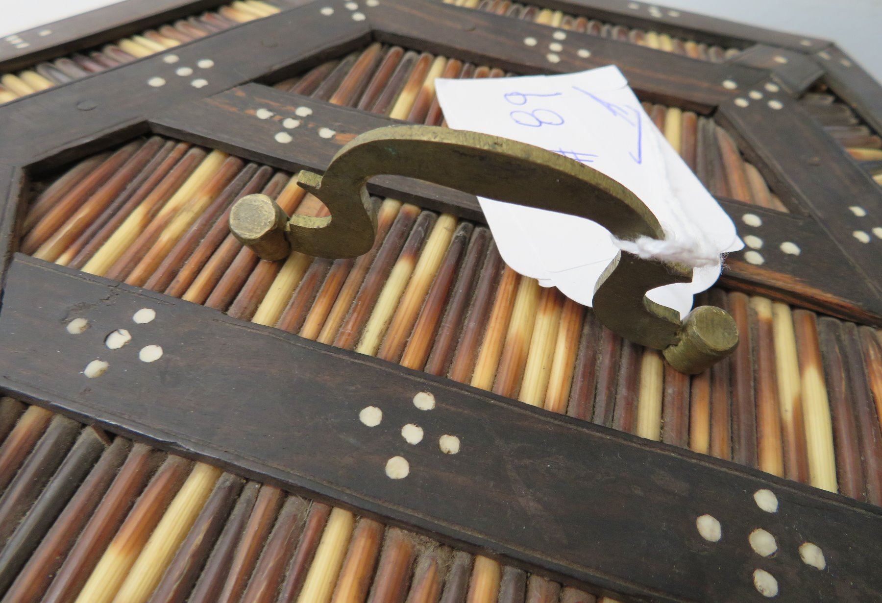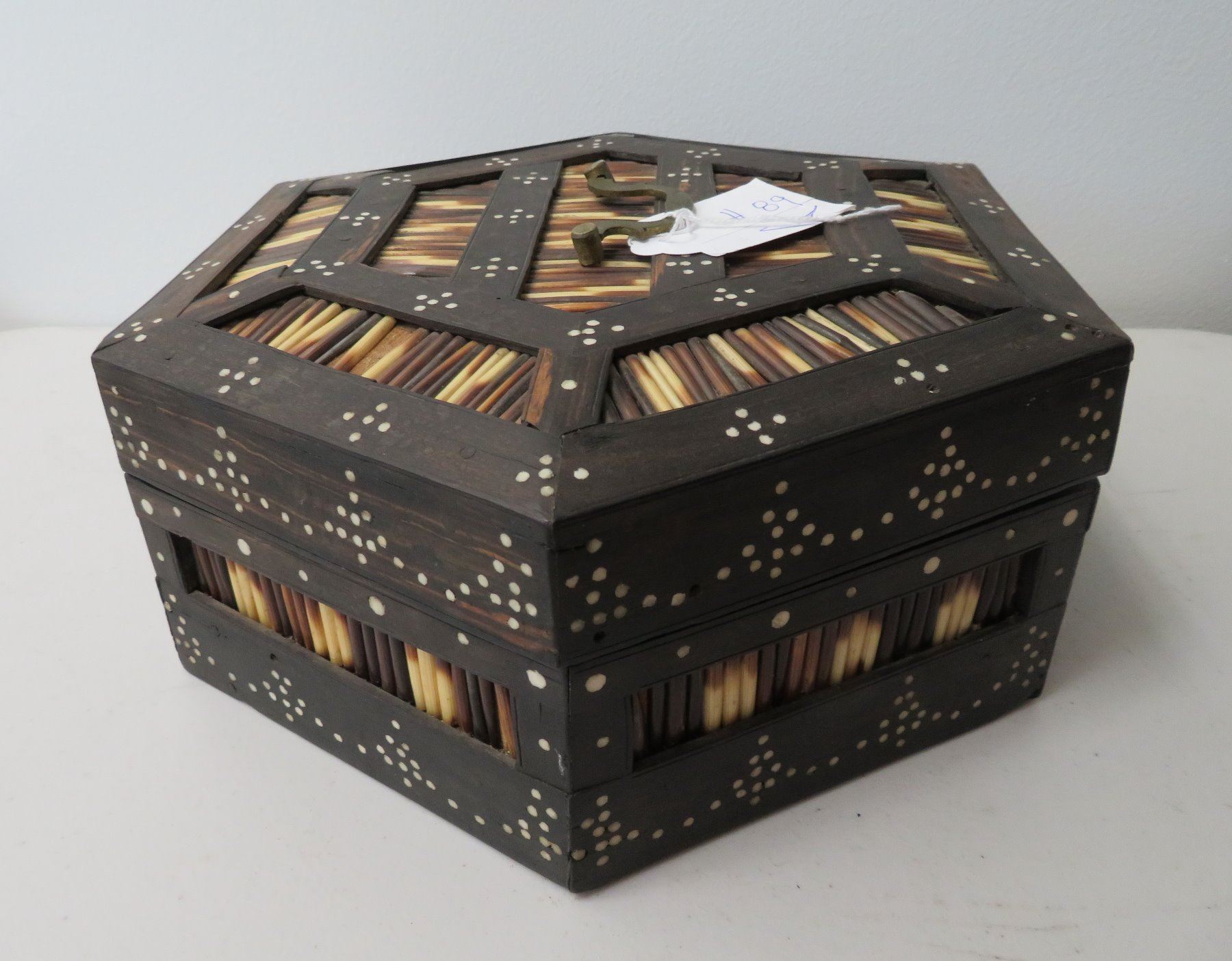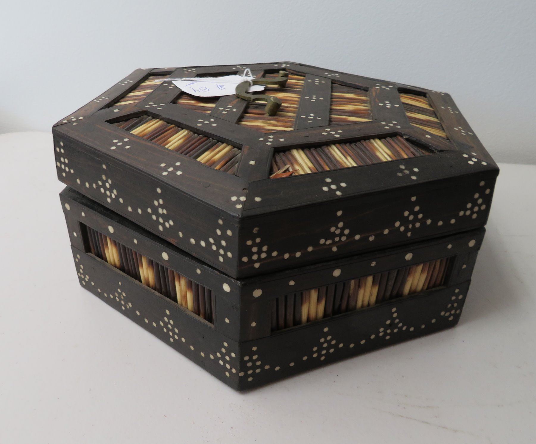 Wood & Porcupine Quill Box, c. 1900s. Made of wood, porcupine quills, and steel, the item measures 11" x 5 1/2". Indonesia. Condition: Good, see images. Shipping: $36.50 USA estimate only, w/insurance and signature, due to size and weight.