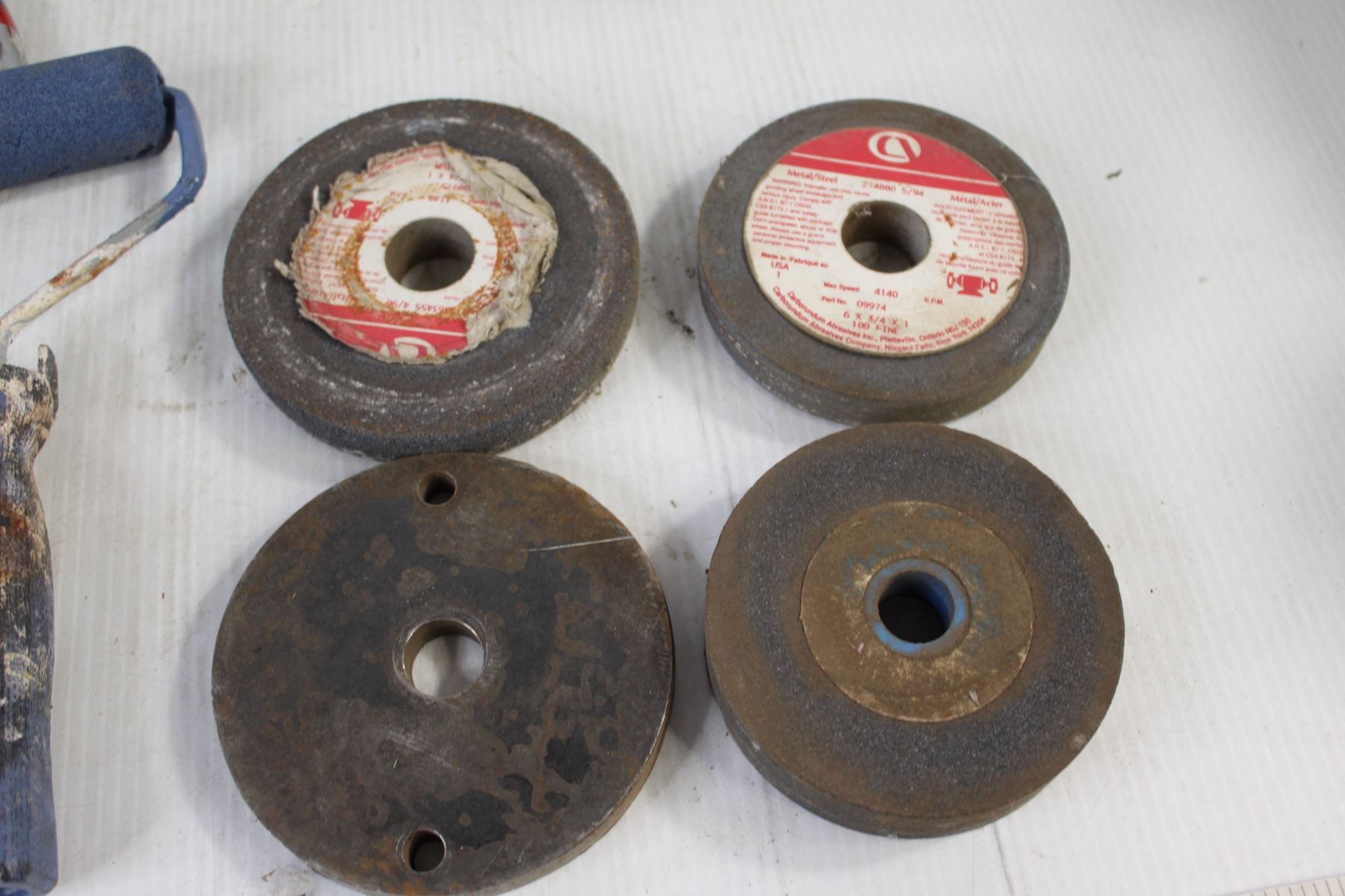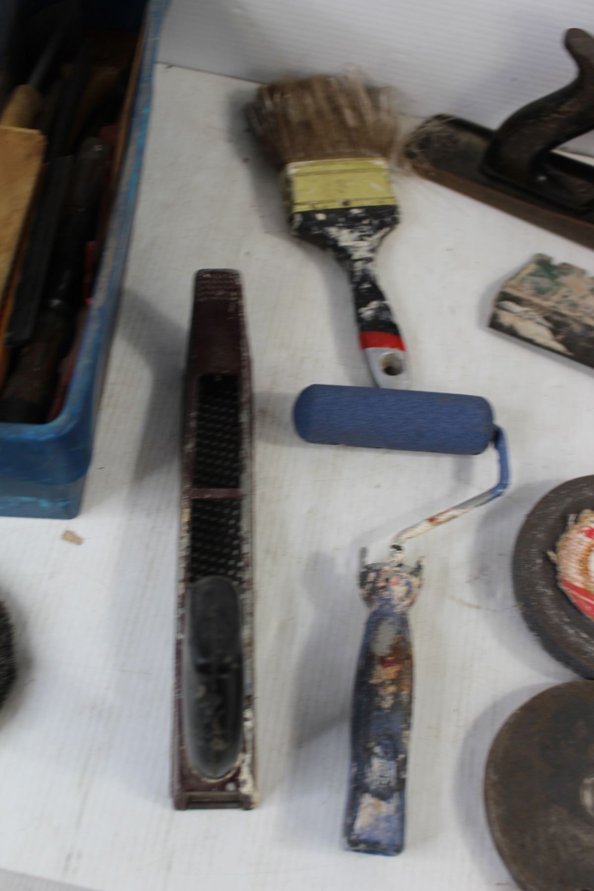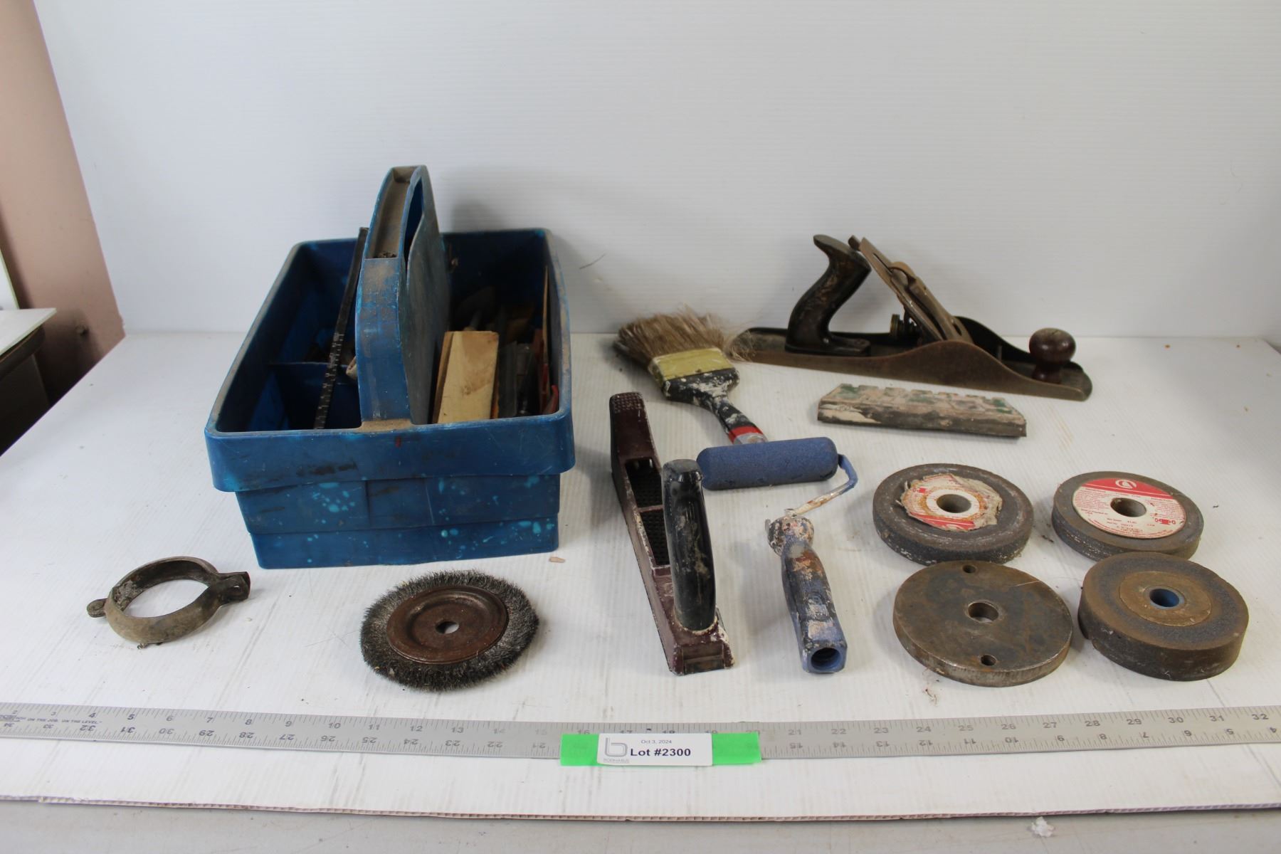 Wood Rasp, Wood plane, Paintbrush, (5) grinding Discs, Assorted Tools and Tool Tray