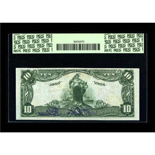 <B>Wood River, NE</B></I> - $10 1902 Date Back Fr. 618 <B>The First NB</B></I> Ch. # (W)3939<BR>A bright <B>PCGS New 61</B></I> from one of the classic hoards of Third Charter notes. Tonight's offering is enhanced by crackling fresh paper surfaces and superior color. A good looking note that would likely have earned an additional point or two from the certification authority with a top margin only slightly more generous.<BR><I>From The Bill and Kathy Stella Currency Collection</B></I><BR><BR><b>Shipping:</b> Coin/Currency (<a target="_blank" href="http://www.heritageauctions.com/common/shipping.php">view shipping information</a>)
