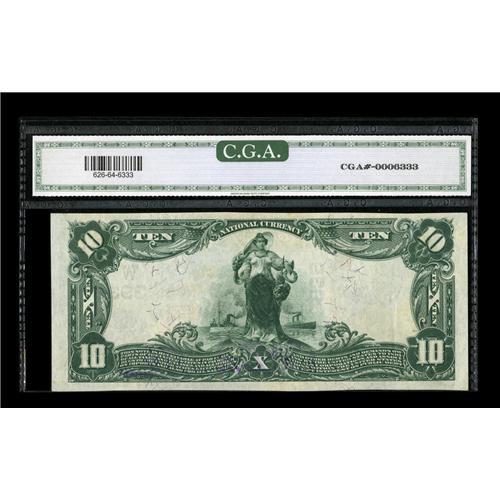 48B. CURRENCY – Notes sold referencing a third-party grading service are sold "as is" without any express or implied warranty, except for a guarantee by Auctioneer that they are genuine. Grading, condition or other attributes of any lot may have a material effect on its value, and the opinion of others, including independent grading services such as PCGS Currency, PMG, and CGA may differ with that of Auctioneer. Auctioneer shall not be bound by any prior or subsequent opinion, determination, or certification by any independent grading service. The grades assigned by any grading service to any note offered in any Heritage Currency Auctions of America sale represent the opinion of that grading service only,and may differ in material respects from the grade assigned to the same note in previous sales by HCAA or other auction companies, or from the grade that would be assigned by any other grading service. HCAA is unable to view any third party graded item outside of the holder, and specifically disclaims any liability of any kind to bidders who bid on third party graded items for mistakes of commission or omission by any grading service. Bidders are hereby notified that currency grading standards have changed in the past and are subject to change in the future, and that the only remedy bidder has with respect to third party graded notes is to deal directly with the grading service certifying the item. Bidders are also advised that Auctioneer makes no representation or guarantee that any item obtained by Bidder will be assigned any particular grade by any particular grading service, and as noted herein, Bidder specifically waives any claim to right of return of any item because of the opinion, determination, or certification, or lack thereof, by any independent grading service. Certain warranties may be available from the grading services and the Bidder is referred to them for further details: Paper Money Guaranty (PMG), PO Box 4711, Sarasota FL 34230; PCGS Currency, PO Box 9458, Newport Beach, CA 92658; Currency Grading & Authentication (CGA), PO Box 418, Three Bridges, NJ 08887.