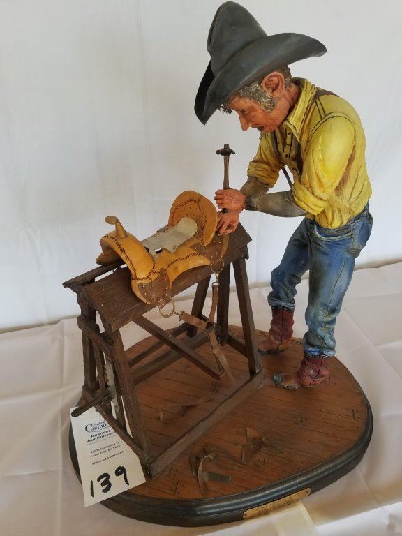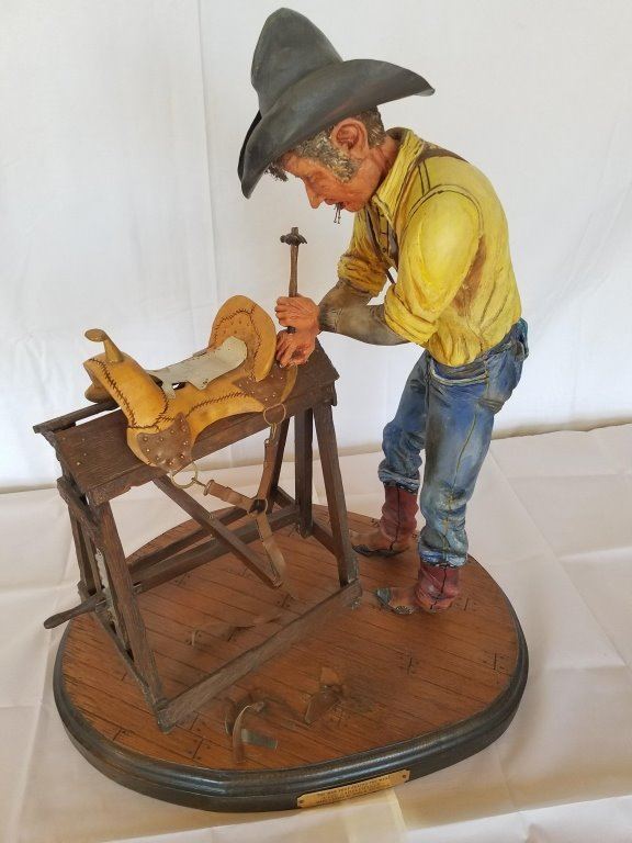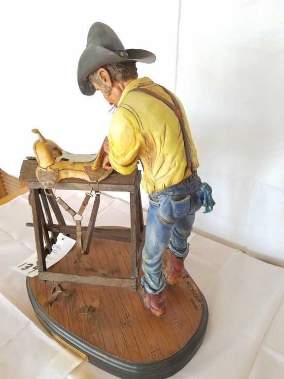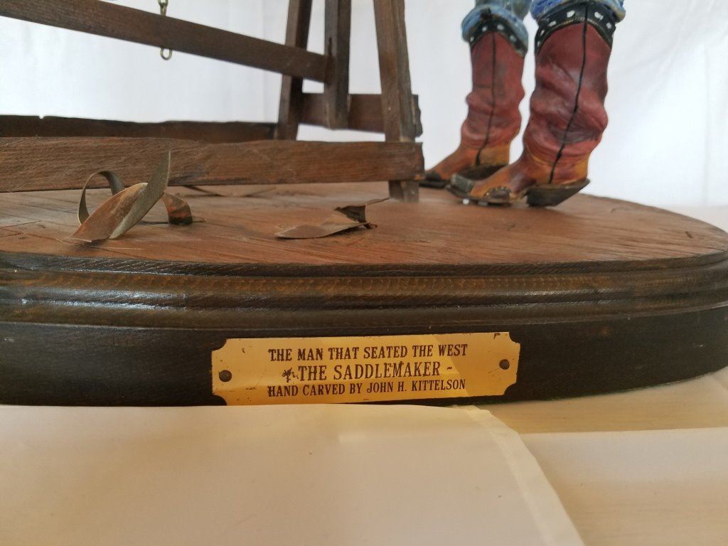 . "The Saddlemaker" Wood Cowboy Sculpture(painted) by John H. Kittleson 21 ½"h x 19"w - Pre-Auction Estimated Valuation $1000 - $1250