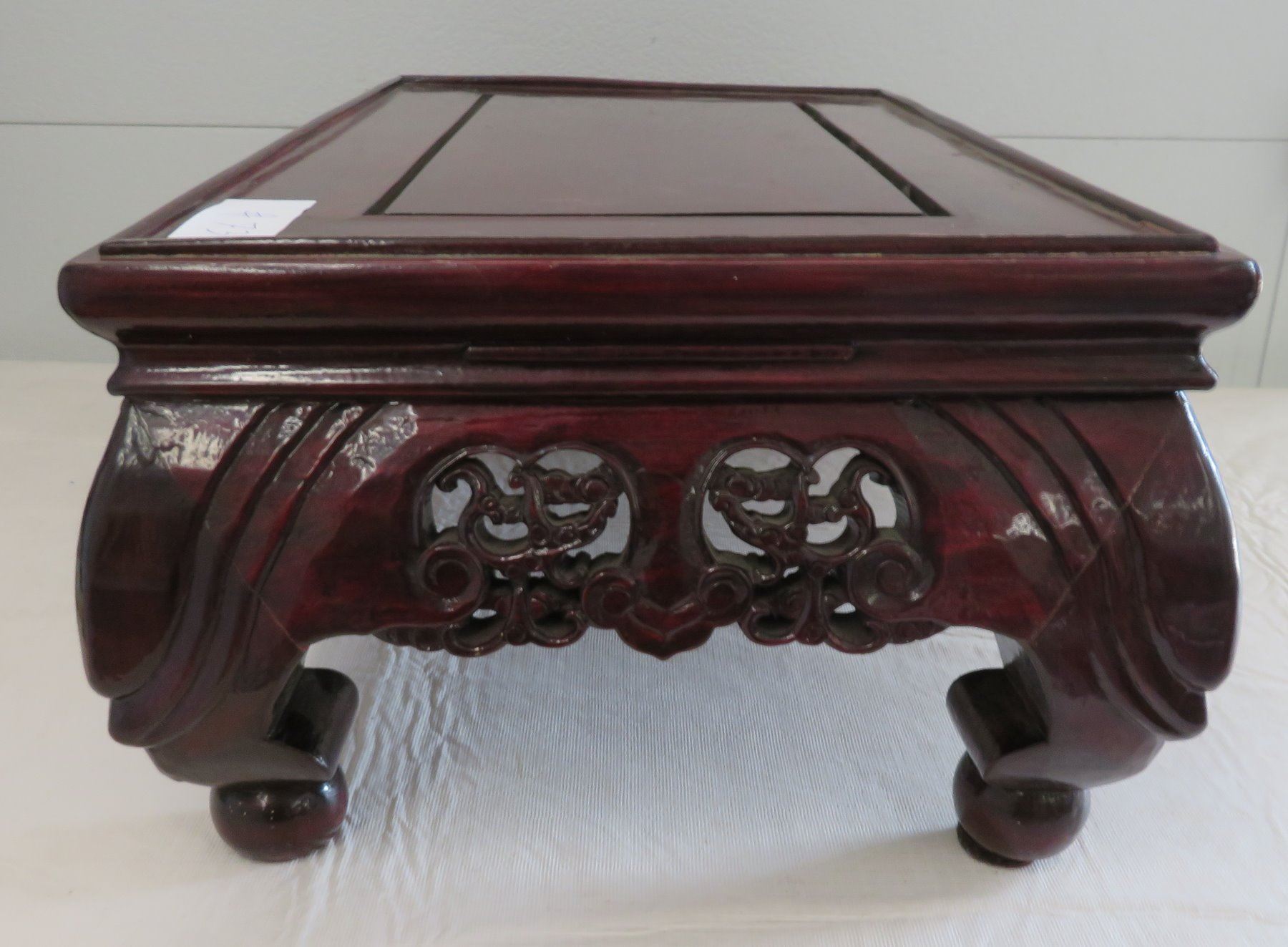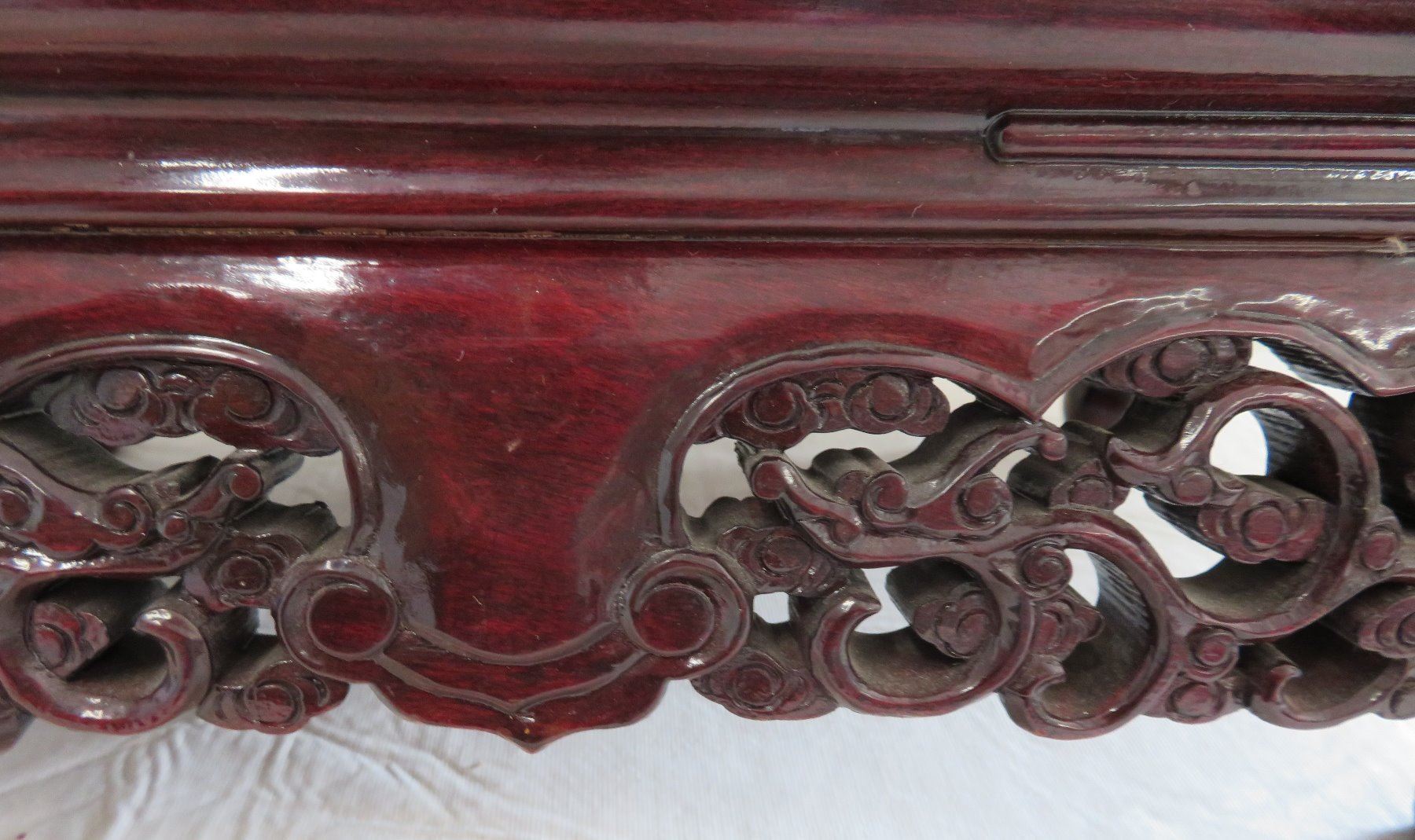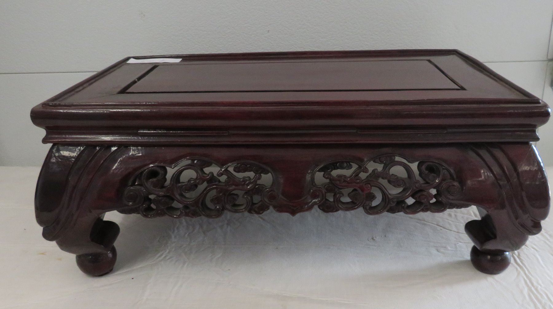Wood Stand, antique item. Made of rosewood, the item measures 18" x 12" x 7". China. Condition: Good, see images. Shipping: $45.00 USA estimate only, due to size and heavy weight, double-boxed, w/insurance and signature.