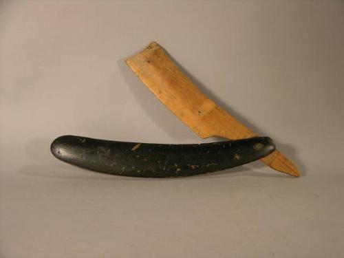 Wood Straight Razor Trade Symbol. 14 inches long closed. Fair Condition.