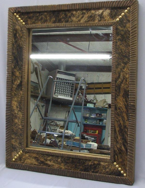 Wood and Brindle Cowhide Framed Mirror. Measures 25''x20.25''. MUST BE PICKED UP! SHI $75.