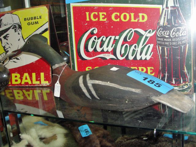 Wood carved signed decoy, signed Curley
