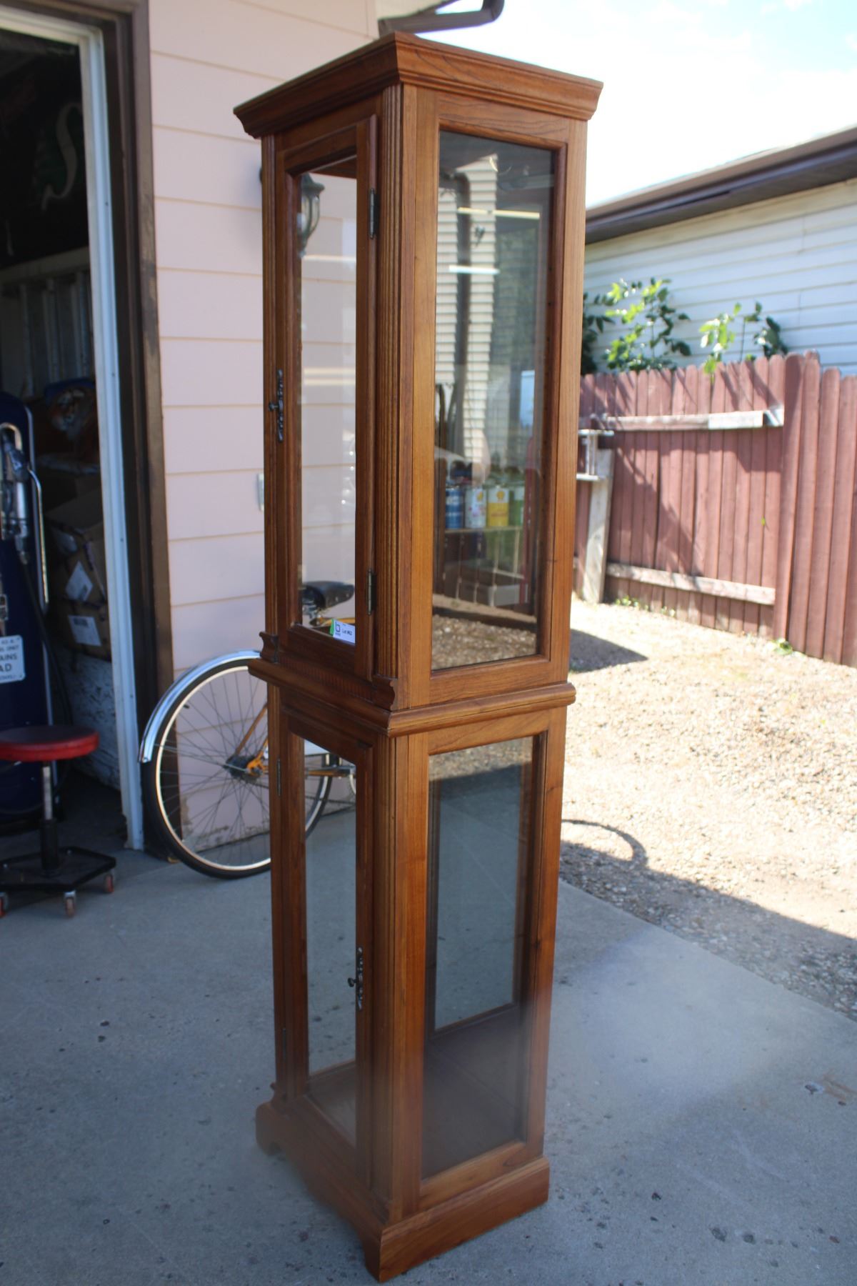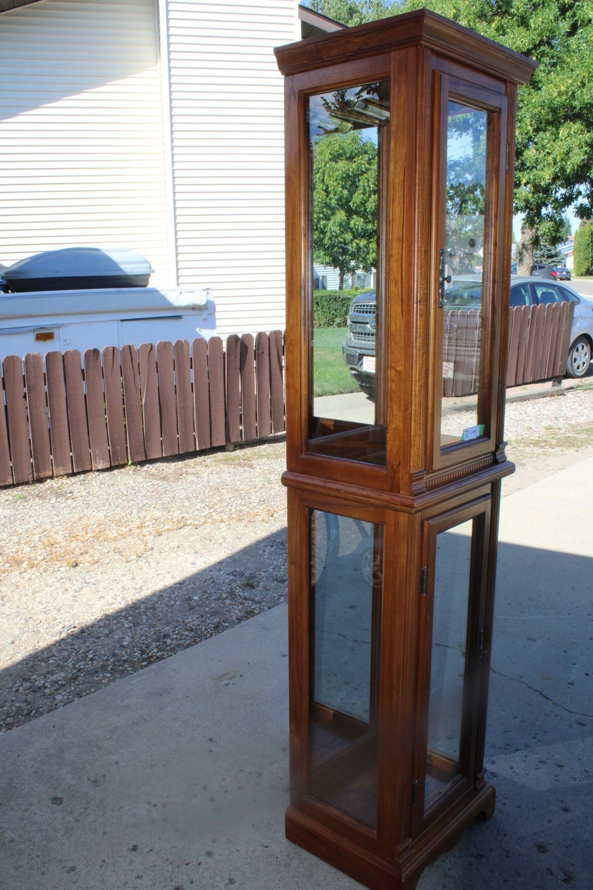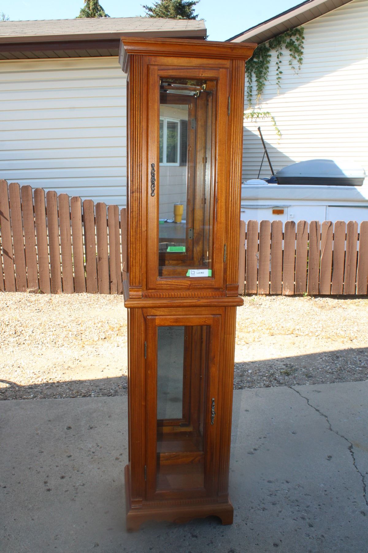 Wood display cabinet with glass shelves and light - working (shelves not pictured but included with pins) - 72H 14D 17W