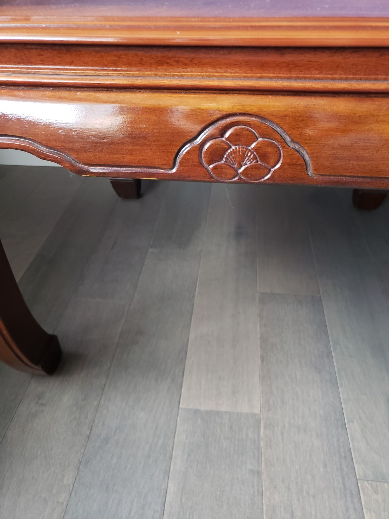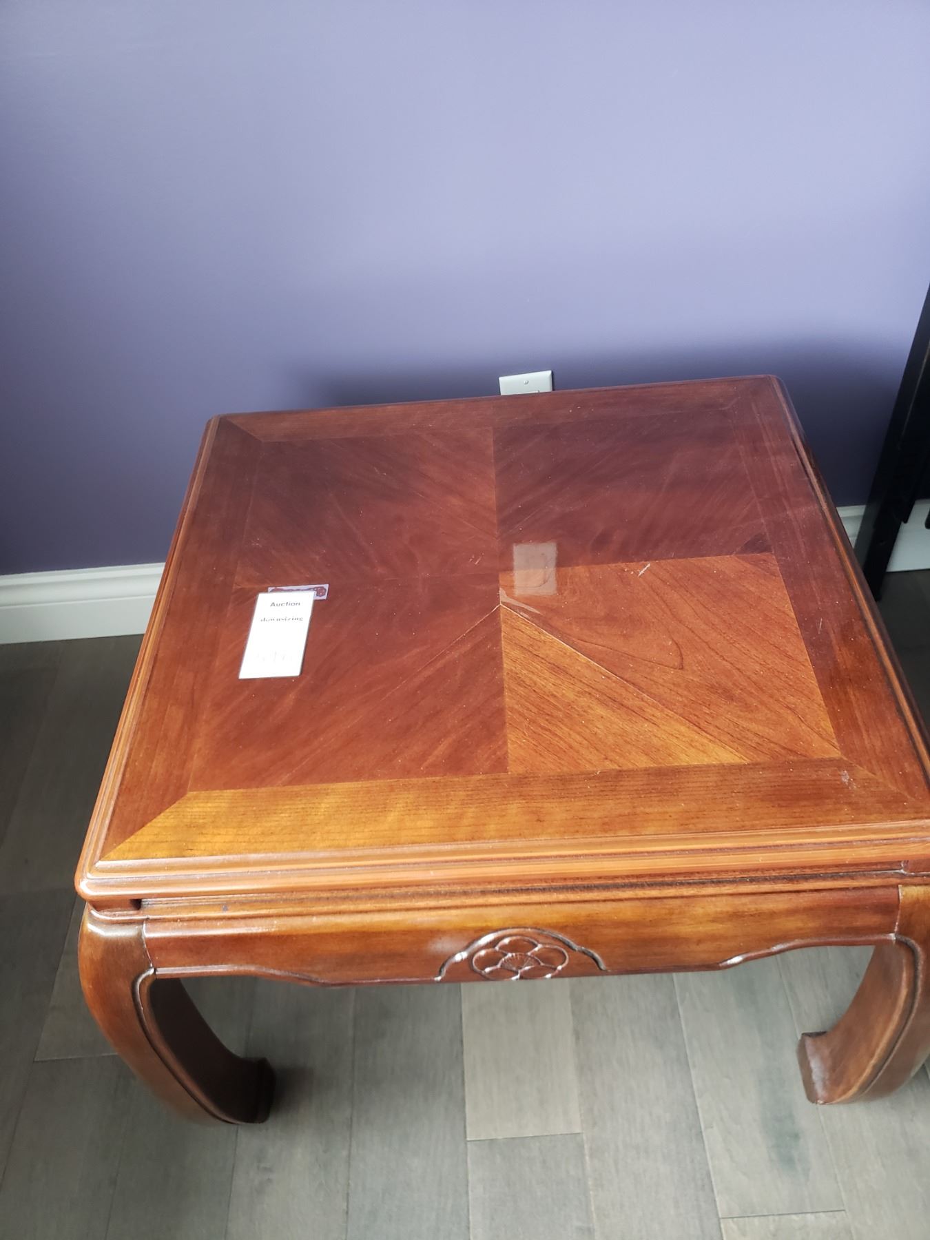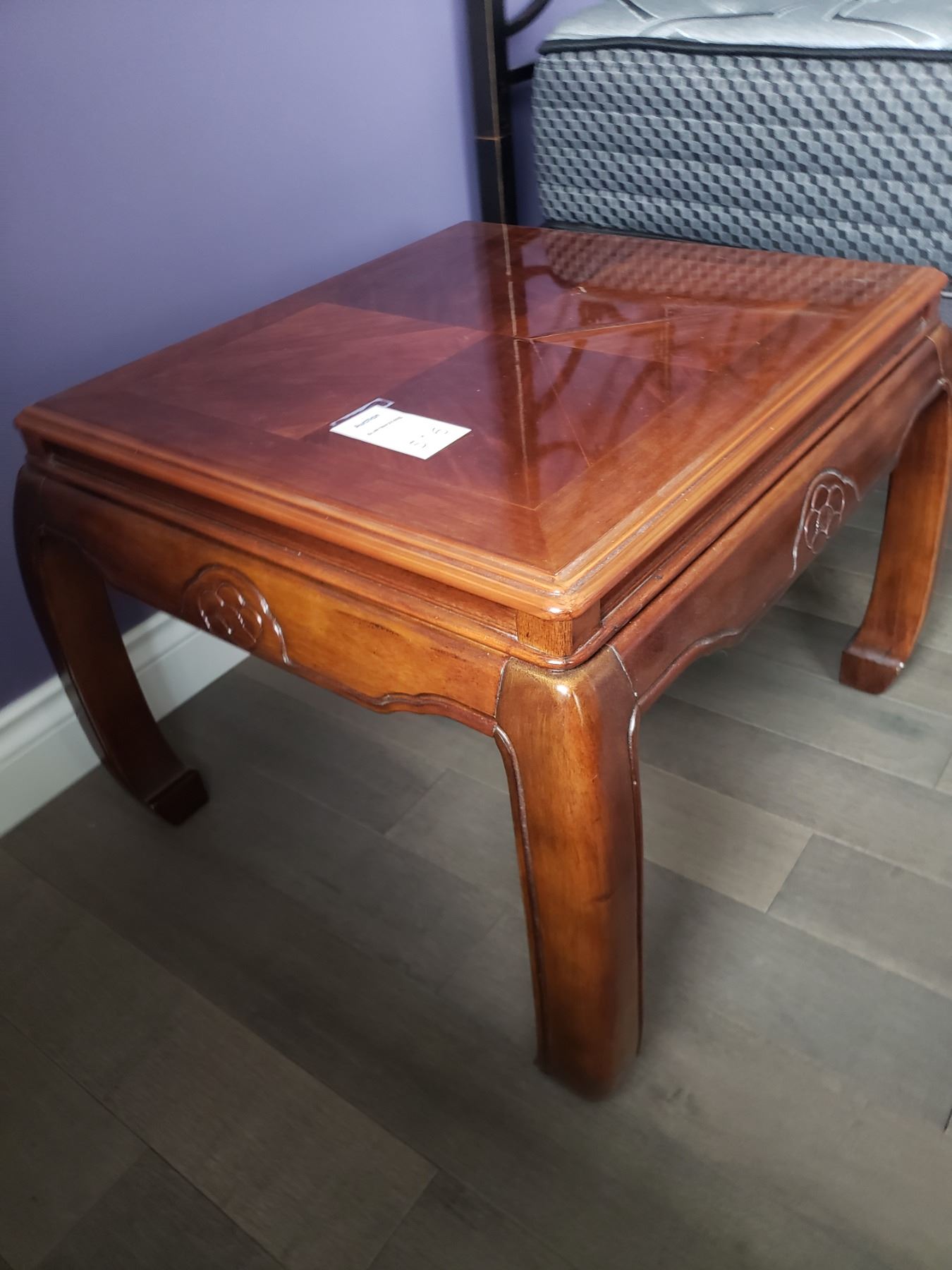 Solid wood end table 26x24x22” minor wear noticeable. Pickup between 10-11am