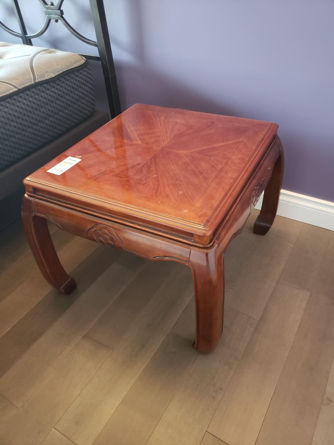 Solid wood end table 26x24x22” minor wear noticeable. Pickup between 10-11am