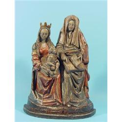 Wood figure, Anna te Drieën, in the style of antique models, h. 48 cm. …