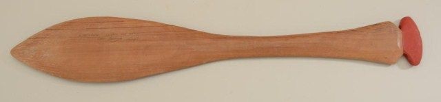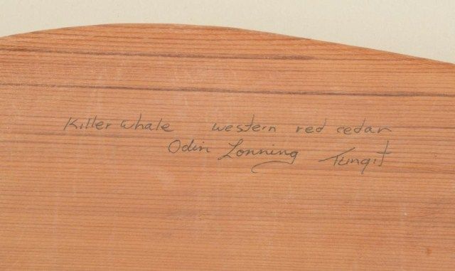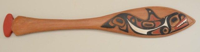 Wood paddle with killer whale by Odin Lorring carved on face and signed; currently priced at $500. Est.: $75-$150.