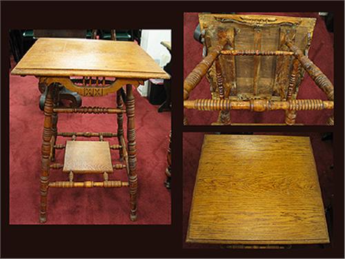 Wood table with spindle legs circa 1890. Table stands 29" tall with the top measuring 23 1/2" square. Winning bidder arranges for pickup and all costs of shipping