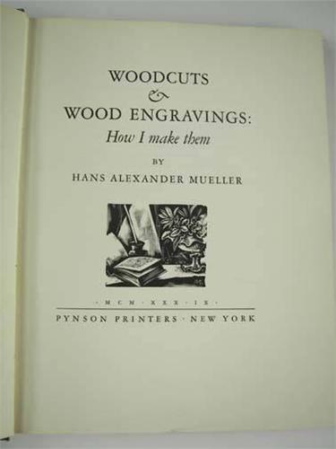 Woodcuts and Wood Engravings, How I Make Them, by Hans Alexander Mueller, published by Pynson Printers, New York, 1939, from the Estate of Charles Ragland Bunnell, Condition: Fair