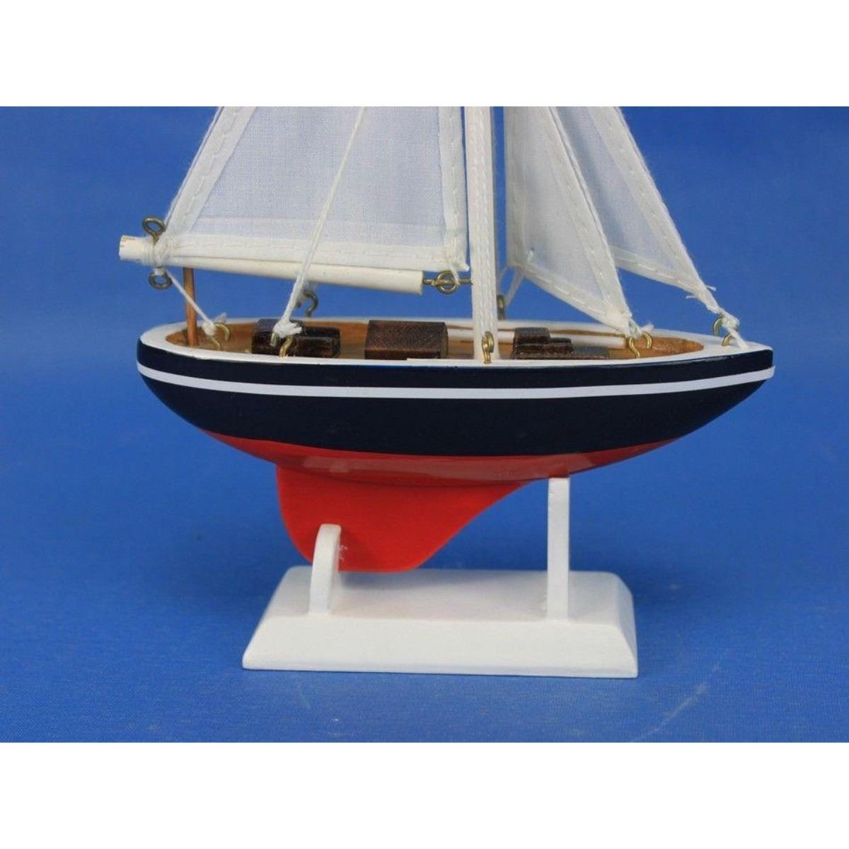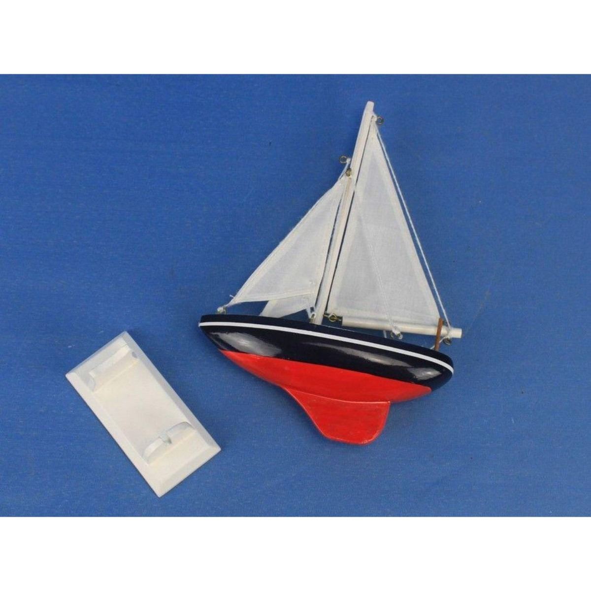 Wooden American Sailer Model Sailboat Decoration 9" NOT A MODEL SHIP KIT    Brighten your day, or any room of your home, with this delightfully fun American Sailer sailboat decoration 9". Perfect nautical decor gifts for friends, children, or party guests, they also make excellent nautical decorations or sailboat centerpieces for a reception or group event. Liven your office, beach house, or sunroom with this American sailboat model today! NOTE: This item is small, only 9". Please measure this size yourself to ensure it is appropriate for your intended purchase. Handcrafted solid wood hull, masts and stand Removable from the base - Use as a cake topper, Christmas tree ornament or some other nautical decor Patriotic nautical colors - Red, White and Blue Largest sailboat selection available - We offer over 150 unique model sailboats Perfect nautical gift for friends, children or party guests Ideal for banquets, receptions, meetings, or any other nautical party or event.