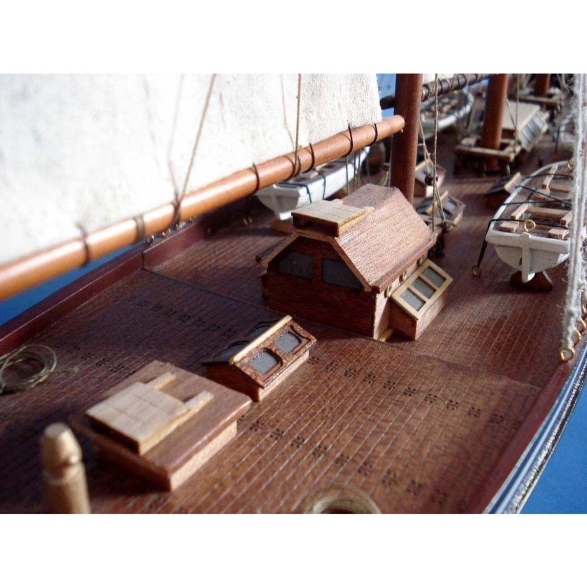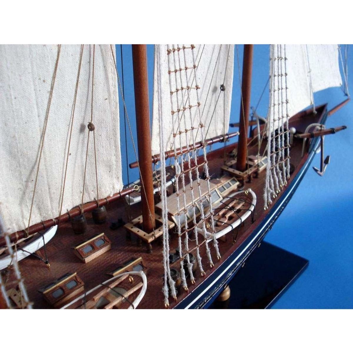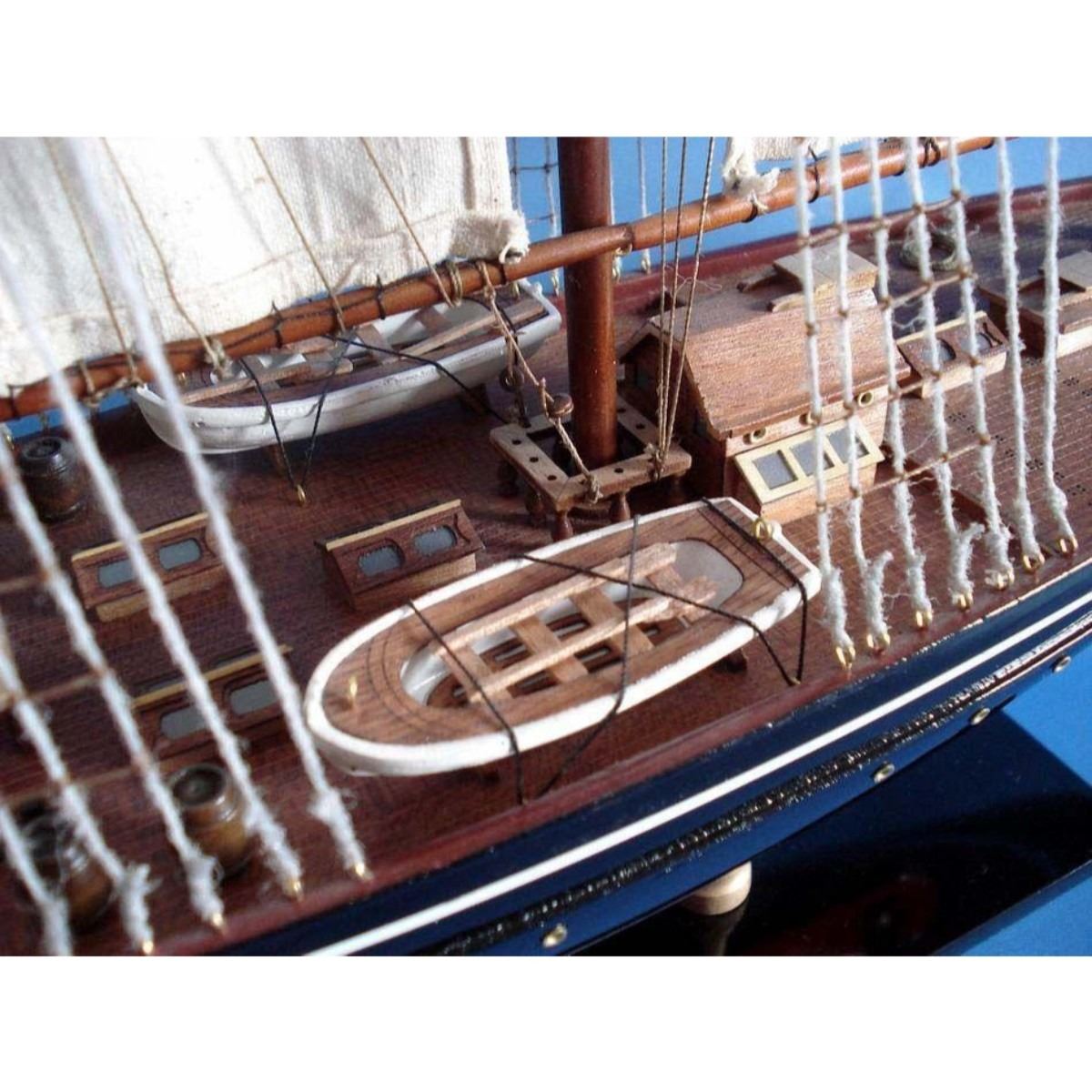 Wooden Atlantic Limited Model Sailboat 32" SOLD FULLY ASSEMBLED Ready for Immediate Display - Not a Model Ship kit Fine craftsmanship and exquisite details are the hallmarks of this Limited Edition replica racing yacht model of the famous Atlanticschooner. Proudly displayed upon a shelf or mantle, the museum-quality features of these Atlantic model yachts are certain to make them the highlight and conversation-piece of any room. 32" Long x 6" Wide x 26" High (1:85 scale) Accurate museum-quality scale replica of the real Atlantic racing yacht Fully assembled model yachts with all masts, sails and rigging already secure and taut Individual plank on frame construction of the hull using fine quality woods, with each plank and wood grain visible through the paint High quality Craftsmanship and Details, including: Four accurate lifeboats with oars tied-down to deck Significantly increased rigging with greater detail and accuracy Metal anchors with wooden crossbars Four flags and racing pennants fly from the masts and rigging Limited production run only 50 of this model sailing ship Certificate of Authenticity individually numbered and signed by HMS Founder and Master Builder Richard Norris Significant research to guarantee accuracy of our sailing ship models includes sources such as photos, historical plans and original artwork.