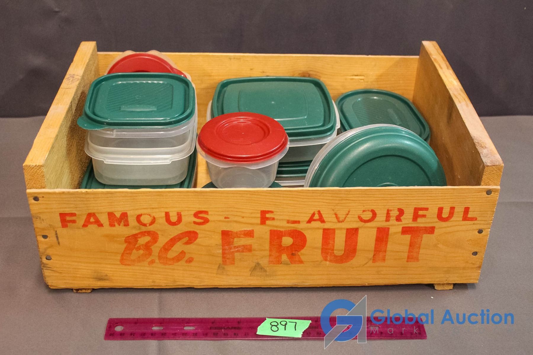 Wooden B.C. Fruit Crate w/ Rubbermaid Food Storage Containers