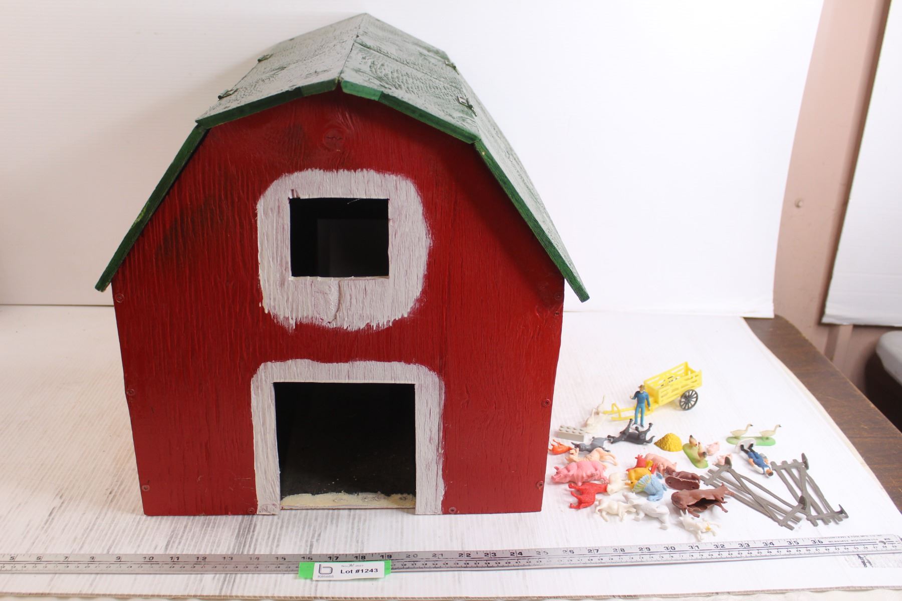 Wooden Barn with Plastic Farm Animals - Barn Measures 16 1/2" x 20 3/4" x 18" Tall