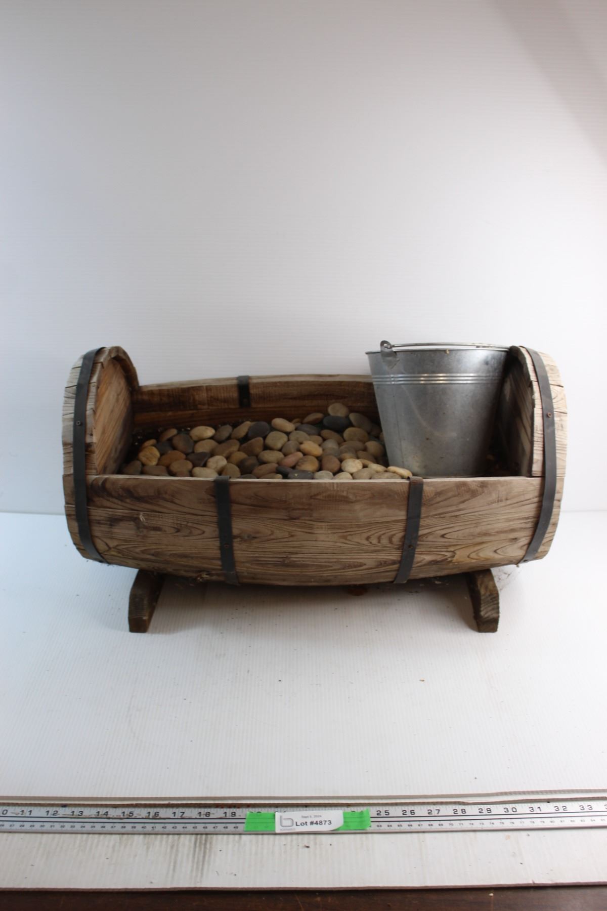 Wooden Barrell Shaped Planter with Small Bucket 25'' x 14''
