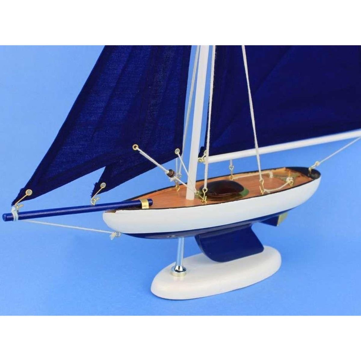 Wooden Bermuda Sloop Dark Blue Model Sailboat Decoration 17" NOT A MODEL SHIP KIT   Attach Sails and this Sailboat Centerpiece is Ready for Immediate Display  Brighten your day, or any room of your home, with this delightfully fun Bermuda Sloop model. Perfect nautical decor gifts for friends, children, or party guests, they also make excellent nautical decorations or sailboat centerpieces for a reception or group event. Liven your office, beach house, or sunroom with one of these colorful sailboat models today! Handcrafted solid wood hull, masts and stand with metal supports Timeless nautical colors - Navy blue and white Largest sailboat selection available - We offer over 150 unique model sailboats Featured in Sept 2011 Brides magazine - Excellent wedding table centerpiece Perfect nautical gift for friends, children or party guests Ideal for banquets, receptions, meetings, or any other nautical party or event.