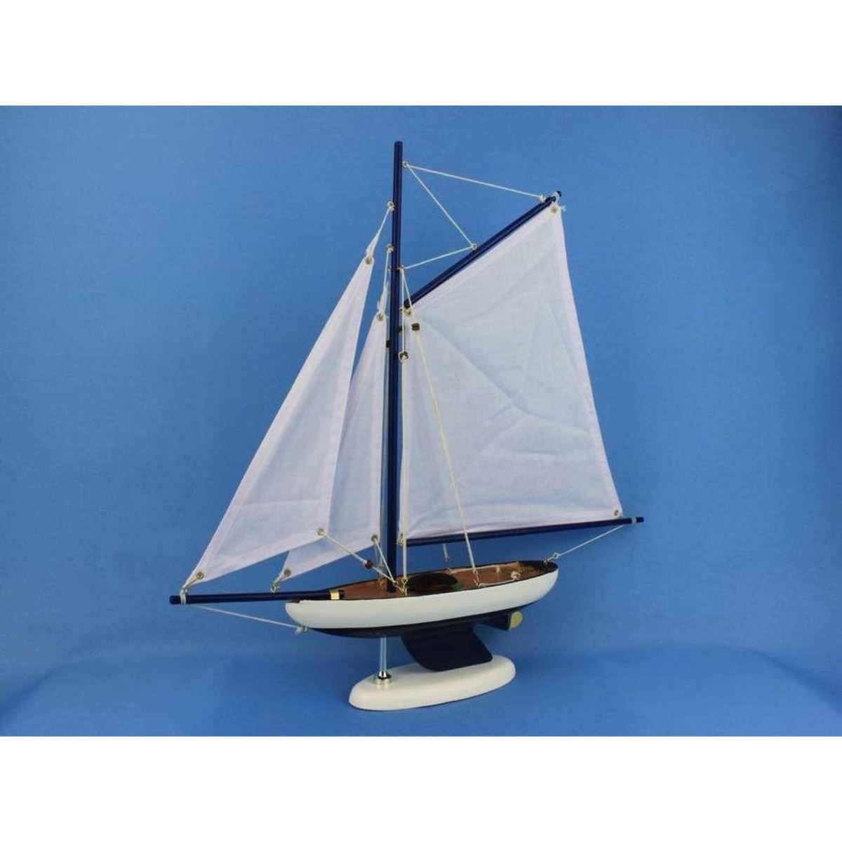 Wooden Bermuda Sloop Dark Blue - White Sails Model Sailboat Decoration 17" NOT A MODEL SHIP KIT Attach Sails and Model Sailboat is Ready for Immediate Display  Brighten your day, or any room of your home, with these delightfully fun sailboat models. Perfect nautical decor gifts for friends, children, or party guests, they also make excellent decorations or centerpieces for a reception or group event. Liven your office, beach house, or sunroom with one of these colorful sailboat models. Suits any room or decor with clean lines and simple colors Includes White Sails ONLY to complement any decor Perfect gift for friends, children or party guests Featured in Sept 2011 Brides magazine - Excellent wedding table centerpiece Multiple colors may be available (varies by model)  This model sailboat may require minor assembly (varies by model) to help keep costs down and avoid damage during shipping. Simply follow instructions to raise mast, attach sails and immediately display in less than 2 minutes. Â