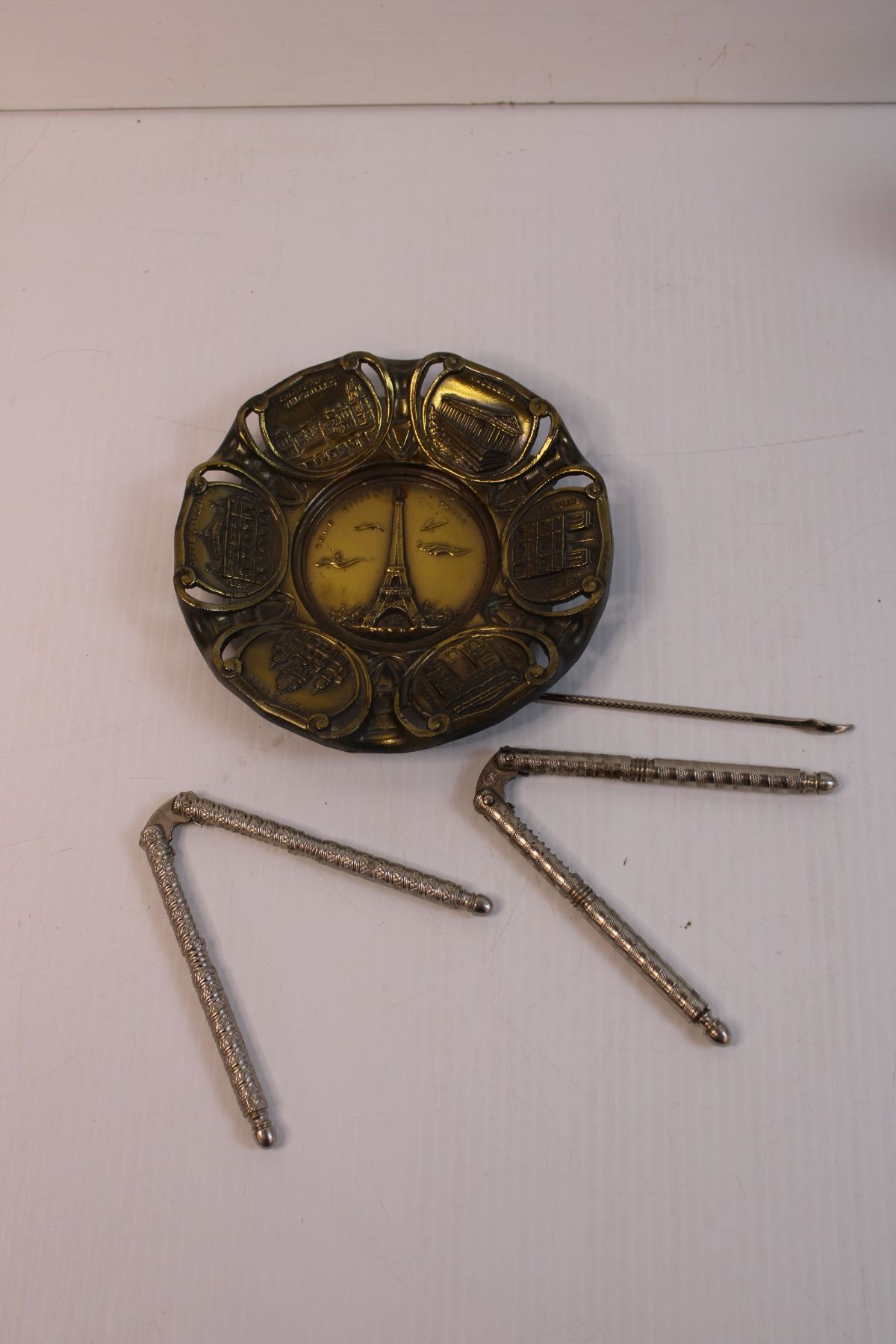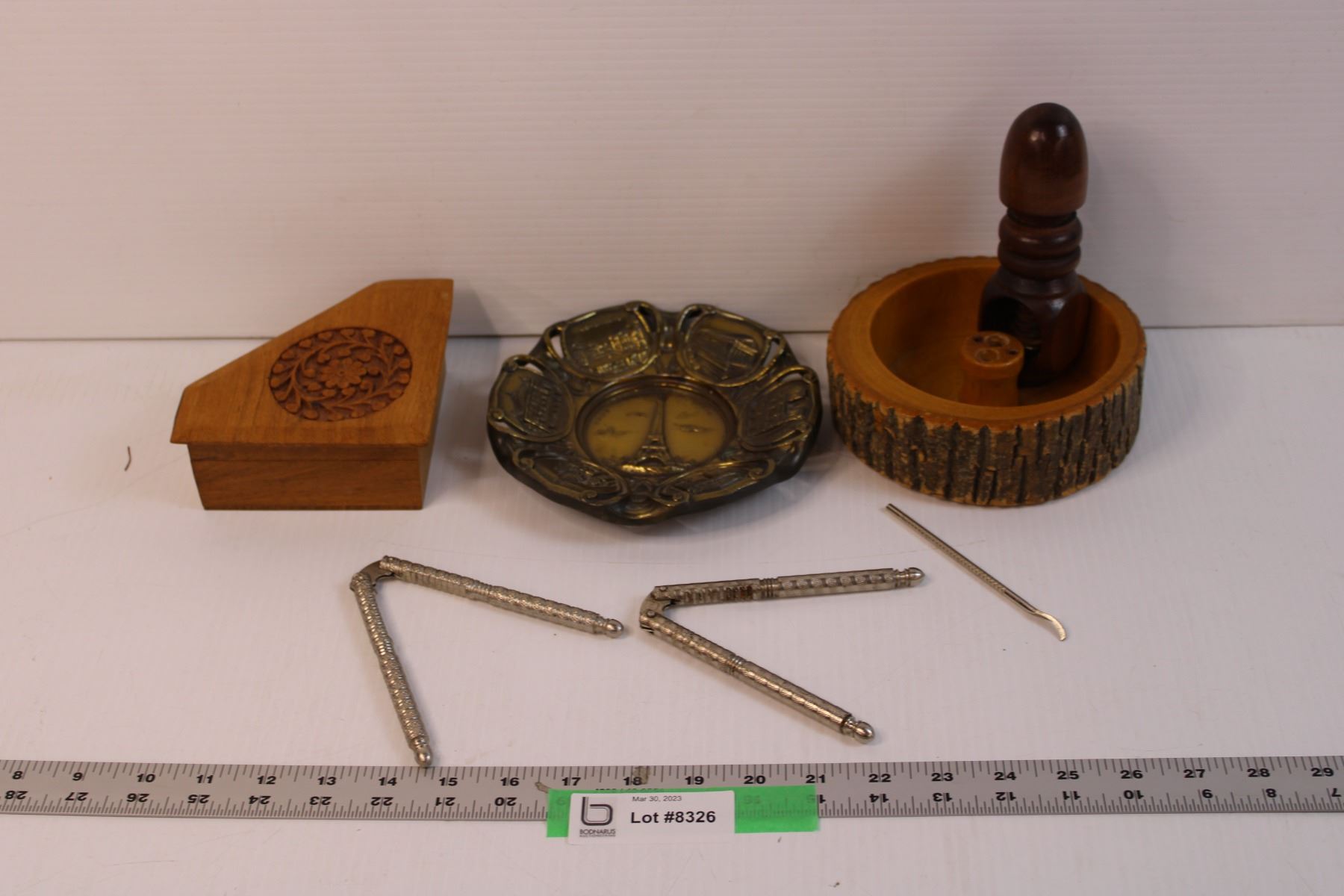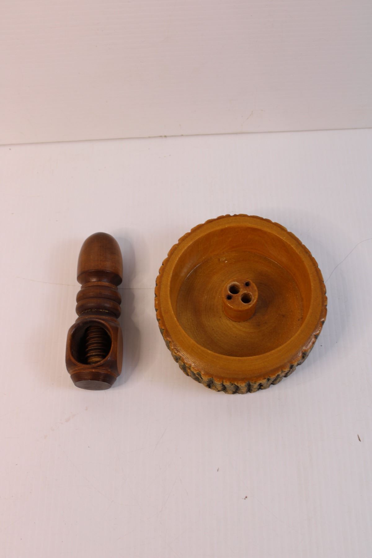 Wooden Box and Nut Holder with Nut Crackers and Misc.