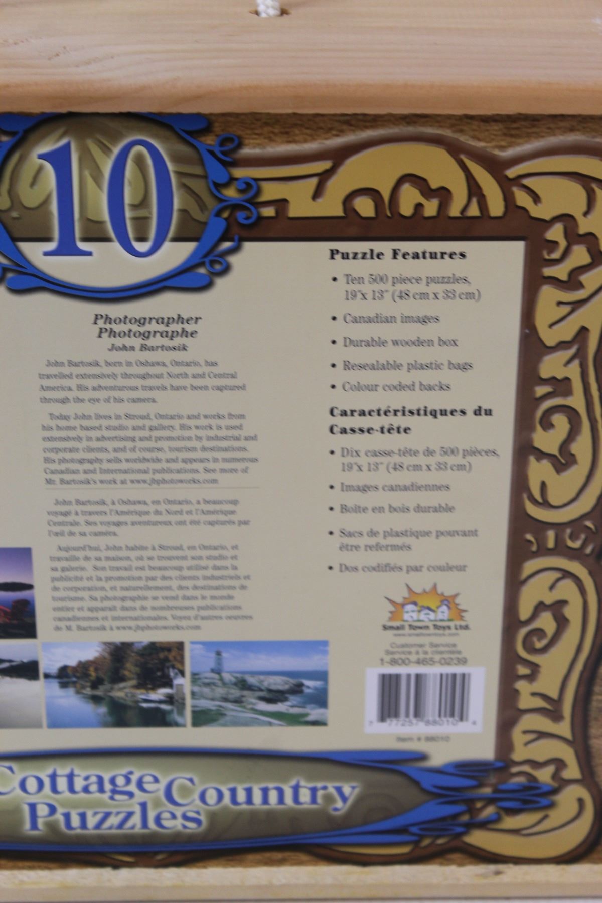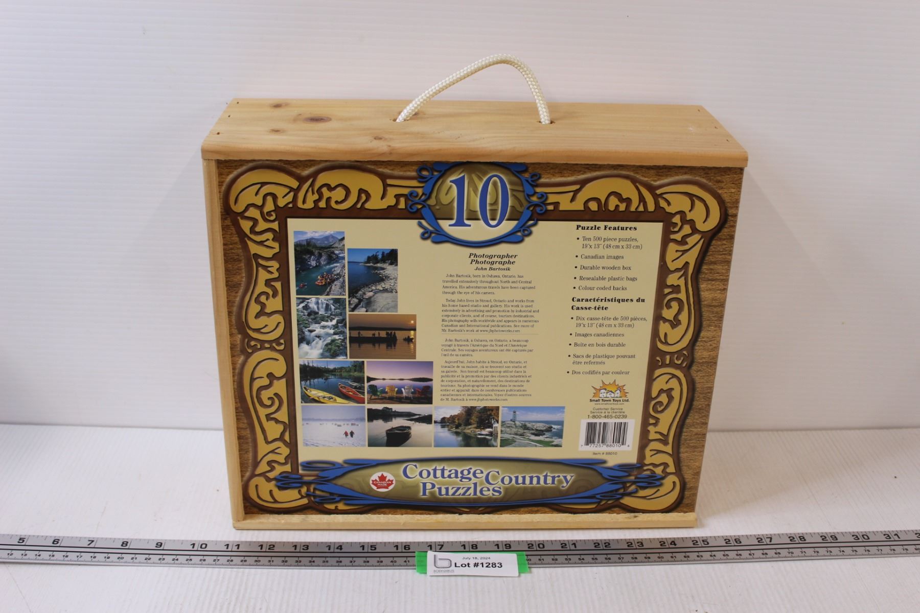 Wooden Box of 10 Cottage Country Puzzles - as is