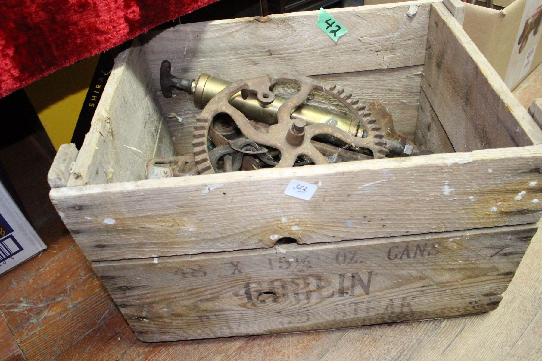Wooden Box w/Collection of Old Metal Misc.Pcs.