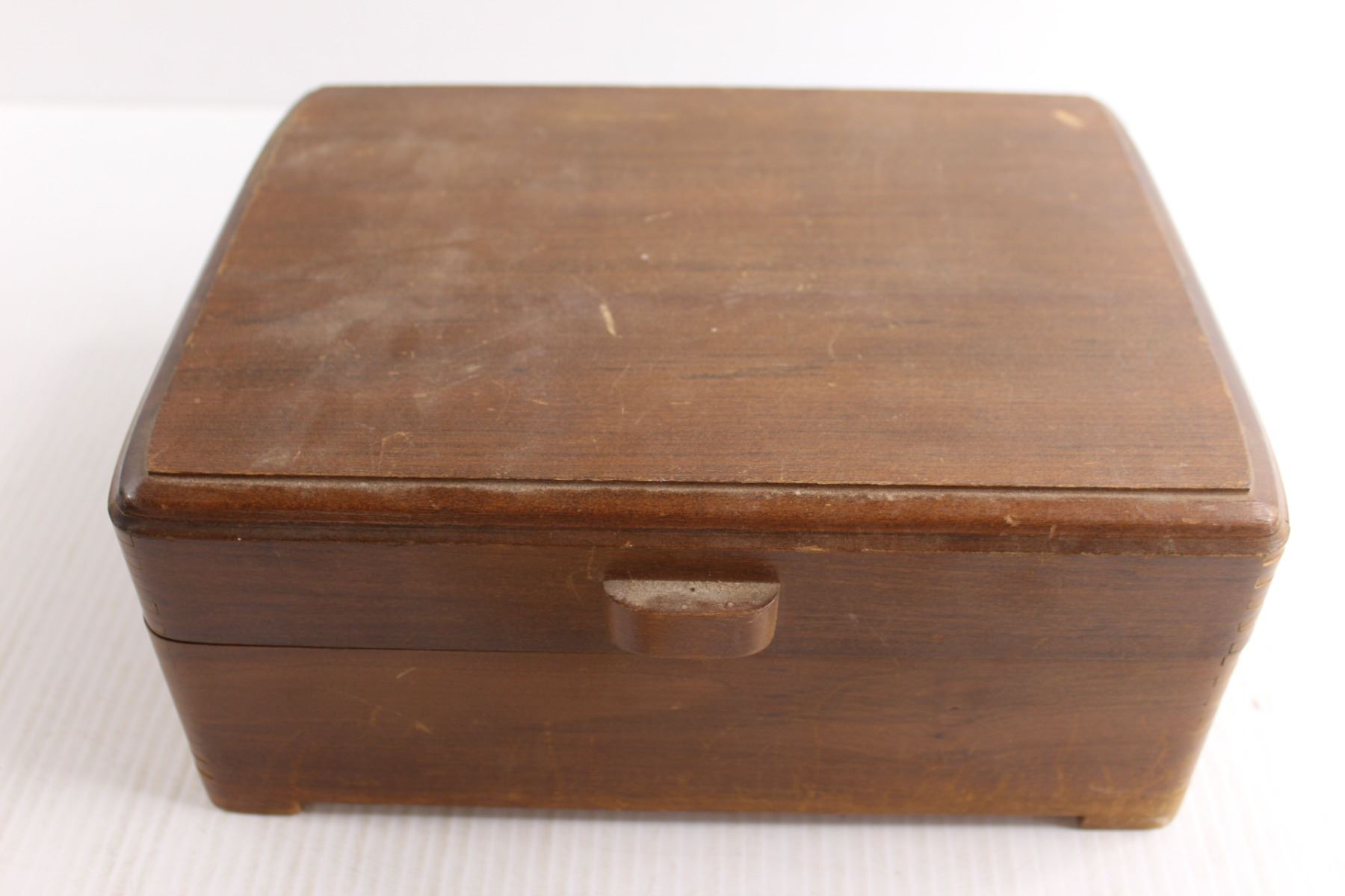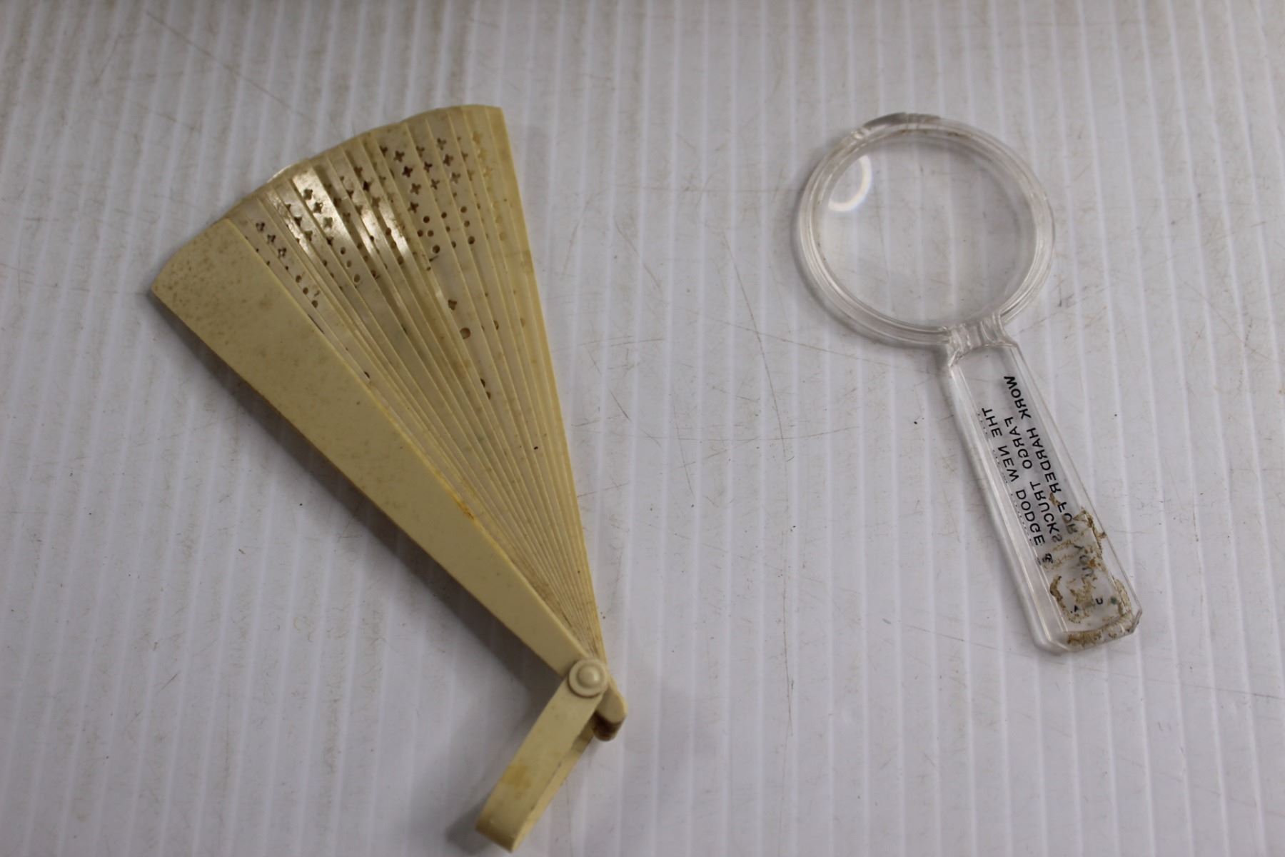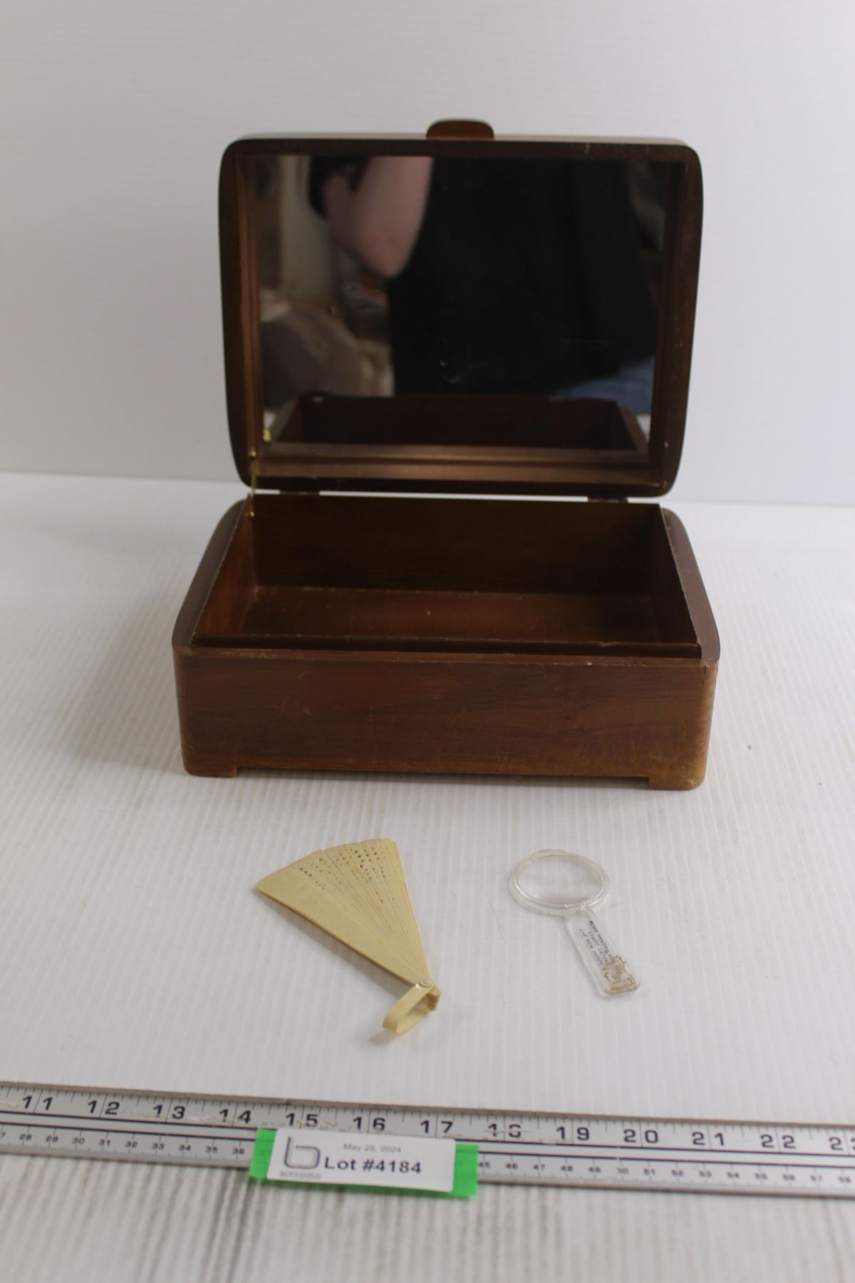 Wooden Box with Mirror, Fan, Magnifying Glass