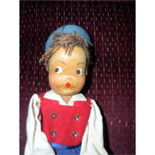 This a wood carved dolls. He has painted facial features and yarn hair. The head and torso are ne piece of wood. There are wires for arms and legs and then carved hands and dutch type shoes and a piece of wood for the lower leg. On one sole it has numbers written in pencil and on the other there is a sticker that says Lotte Sievlers Hann Werkstatt. He's all original. If you can enjoy him, please bid. He is from a smoke free environment. Buyer to pay $10.00 for U.S. shipping, insurance, and handling. Thanks for viewing.