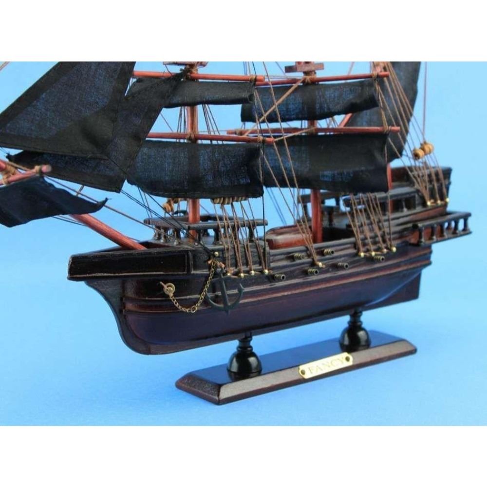 Wooden Calico Jack's The William Model Pirate Ship 14" SOLD FULLY ASSEMBLED Ready for Immediate Display - Not a Model Ship kit Set sail for adventure on the high seas with Calico Jack aboard this tall pirate ship model of his legendary flagship, the William. These adorable tall ship models rest easily upon any shelf or desk and add an adventurous touch to any room’s decor. Arrives fully assembled with all sails mounted Handcrafted wooden hull and masts High quality woods include cherry, birch, maple, and rosewood 11 handsewn black cloth sails Metal nameplate on wooden base identifies the ship as the Queen Anne's Revenge
